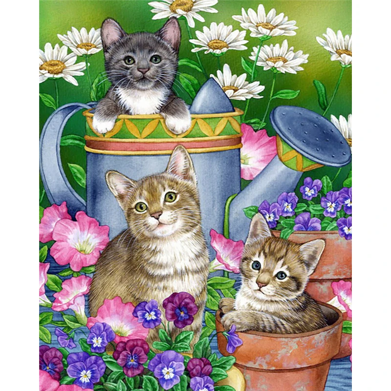 Алмазная живопись 5D сделай сам, вышивка с кошками, пейзаж, вышивка...