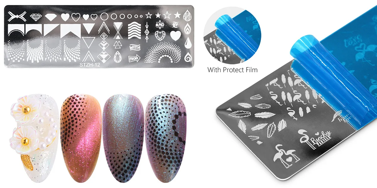 Штамп для ногтей Pinkiou, Желейный штамп, силиконовый штамп для ногтей, штамп для ногтей с пластинами для стемпинга, шаблоны