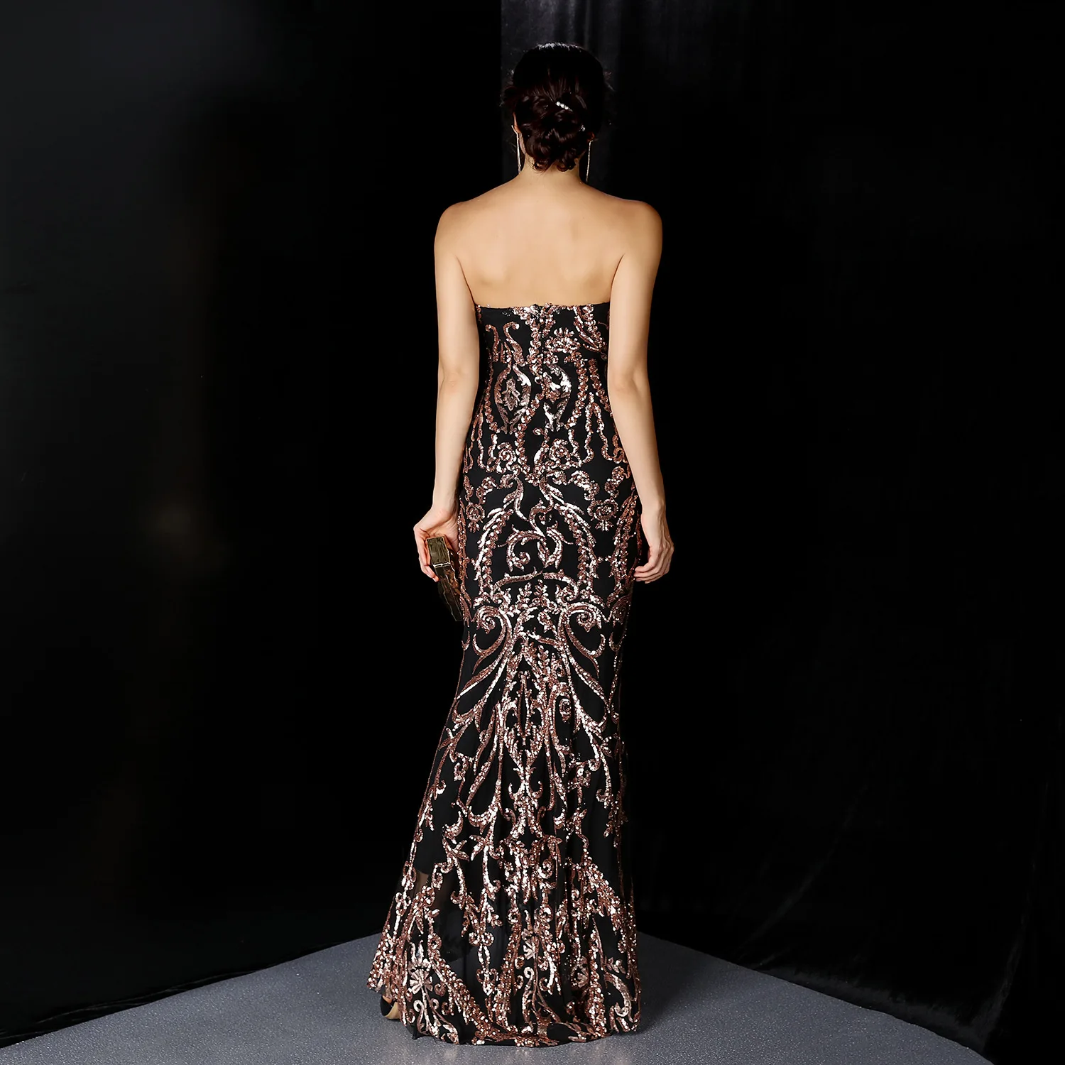Женское коктейльное платье, черное блестящее вечернее платье-Русалк...