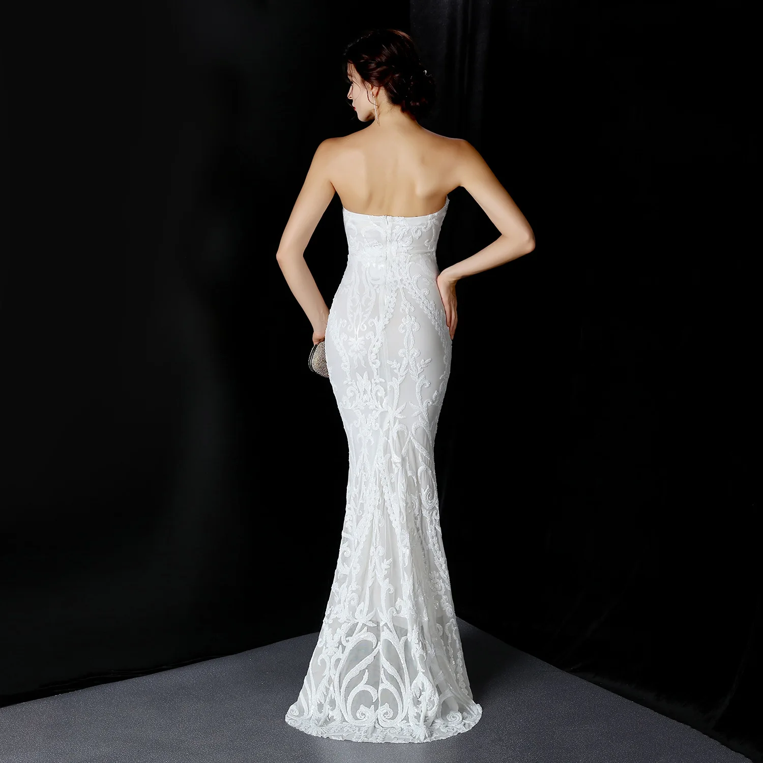 Женское вечернее платье с блестками, длинное ажурное платье с длинн...