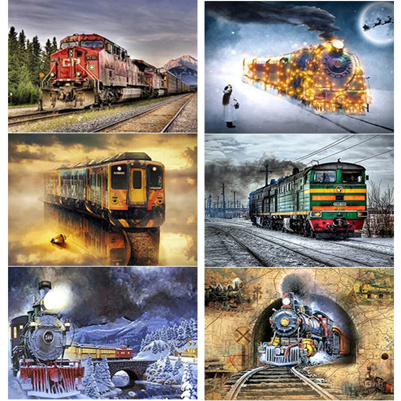 Алмазная картина 5D сделай сам, полноразмерная вышивка квадратными и круглыми стразами, поезд с бусинами, для домашнего декора, ручное искусство, подарок