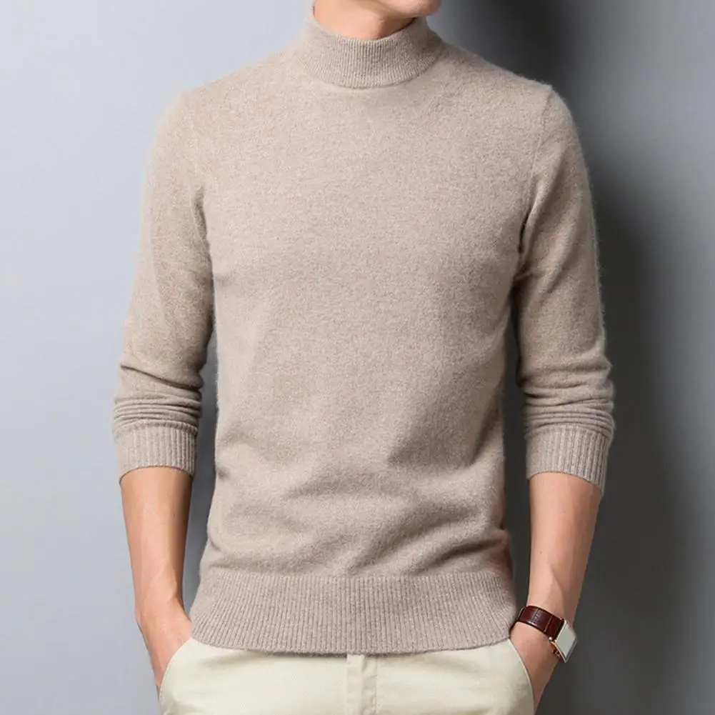 Классический однотонный вязаный свитер с длинными рукавами, Универсальный Дышащий свитер с высоким воротом, мужской свитер и пуловер на осень и зиму, свитер