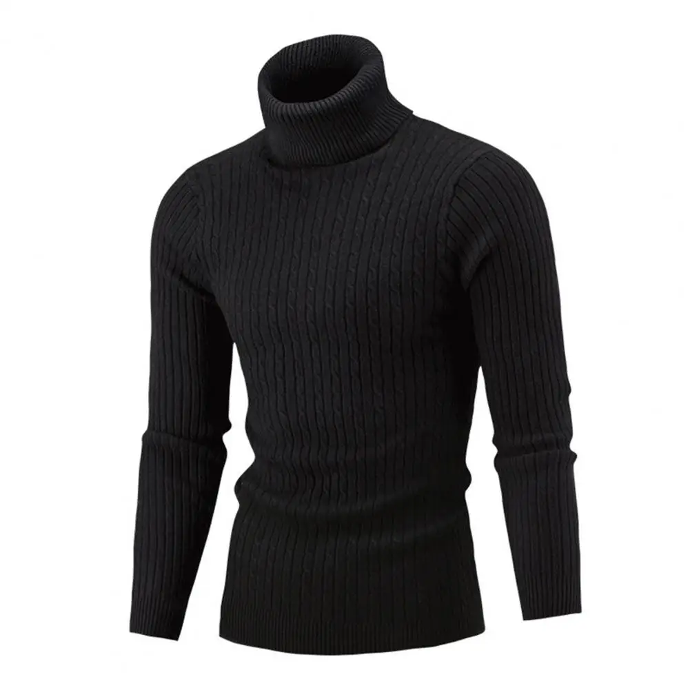 Мужской зимний однотонный вязаный свитер с длинным рукавом универсальная водолазка мужские облегающие свитеры с закрученным воротником пуловер трикотажная одежда