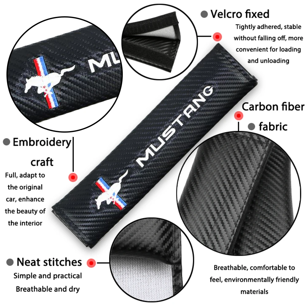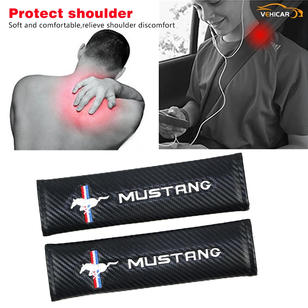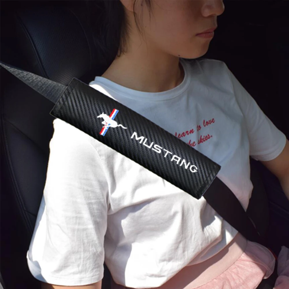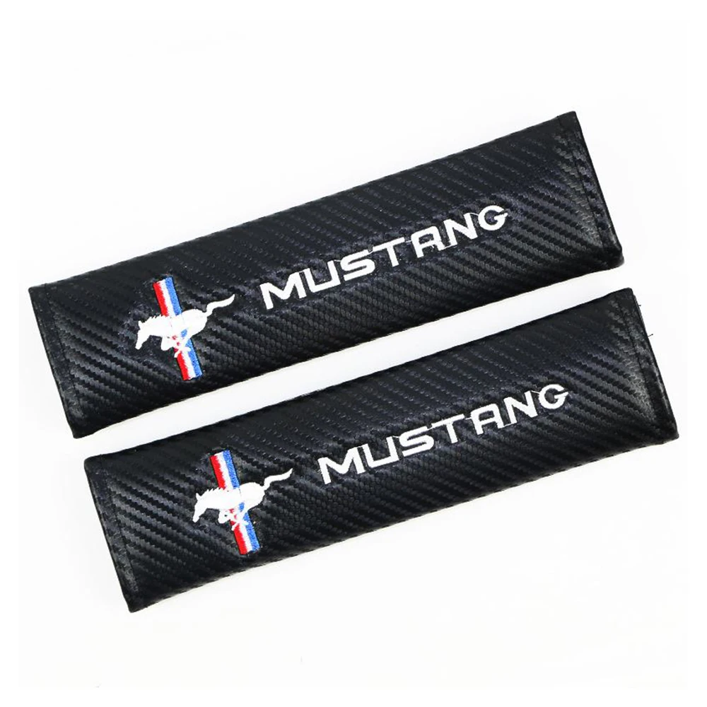 Автомобильные чехлы для ремня безопасности, 2 шт., защитные Наплечные накладки из углеродного волокна для водителя, автомобильные аксессуары MUSTANG
