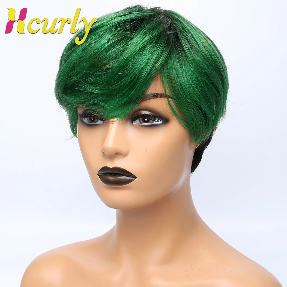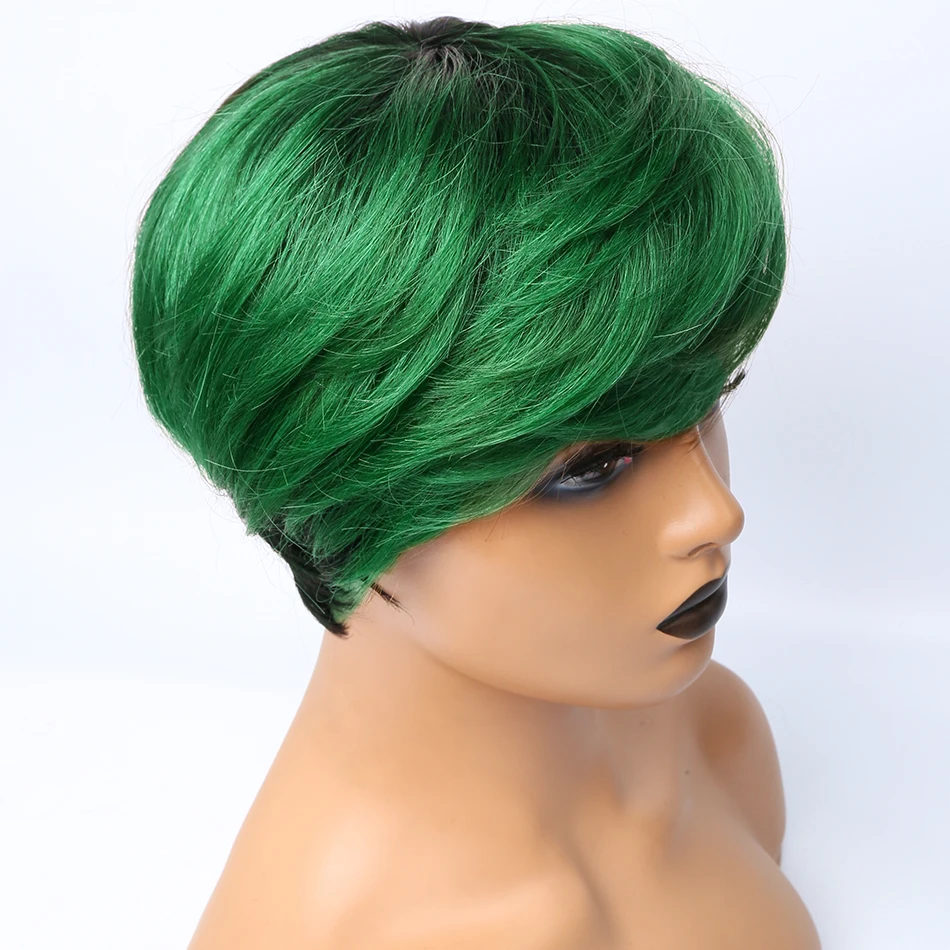 Парики из нечеловеческих волос зеленого цвета Омбре для женщин, парики из прямых волос с вырезами челки, парик из синтетических волос, дешевые безклеевые парики