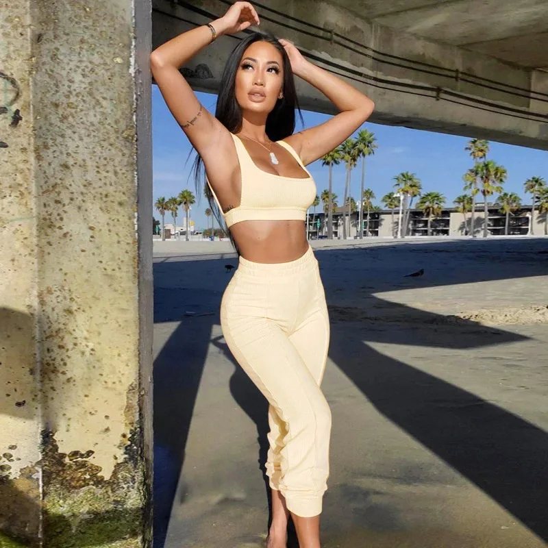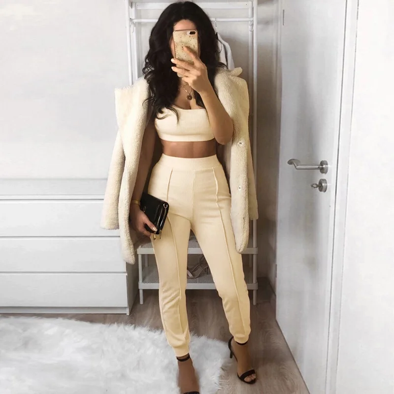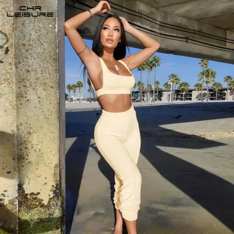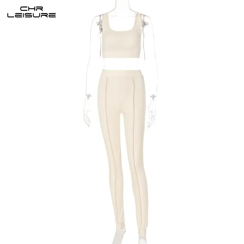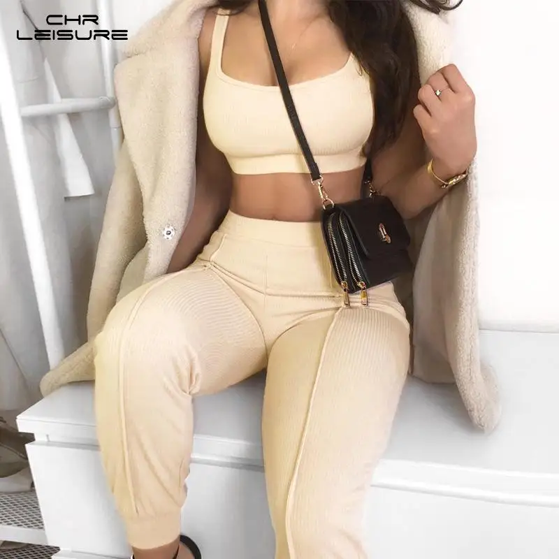 Женский спортивный костюм с брюками CHRLEISURE, однотонный спортивный удобный и спортивный костюм из двух предметов, для бега