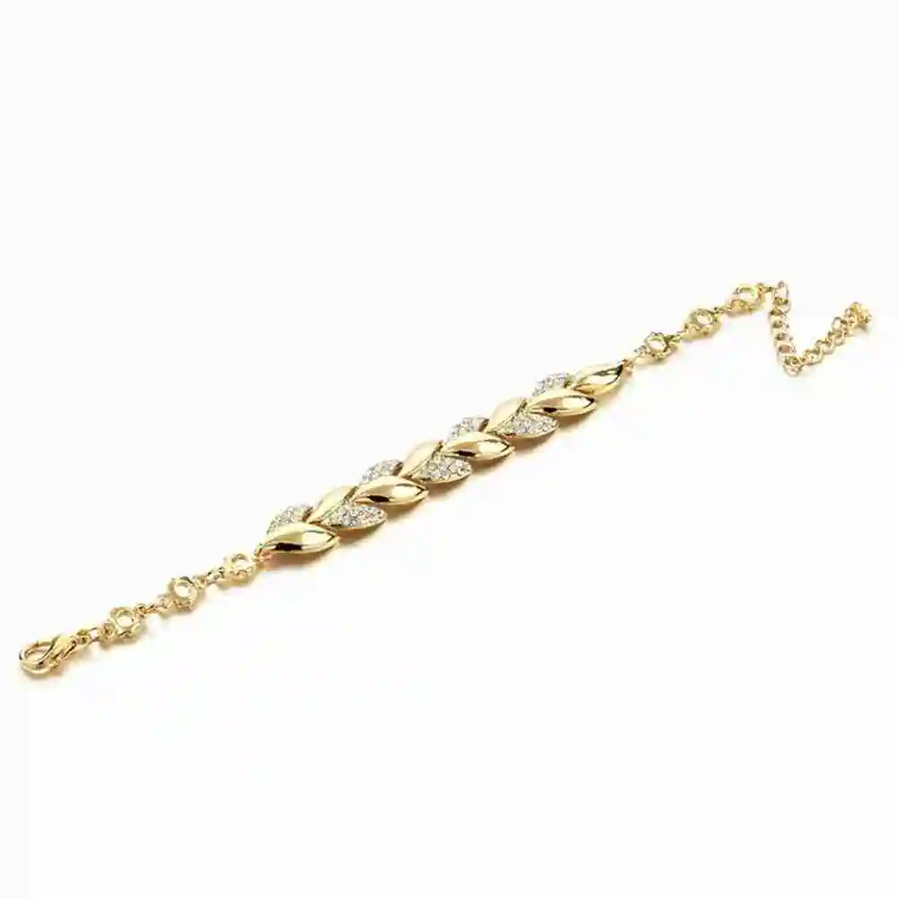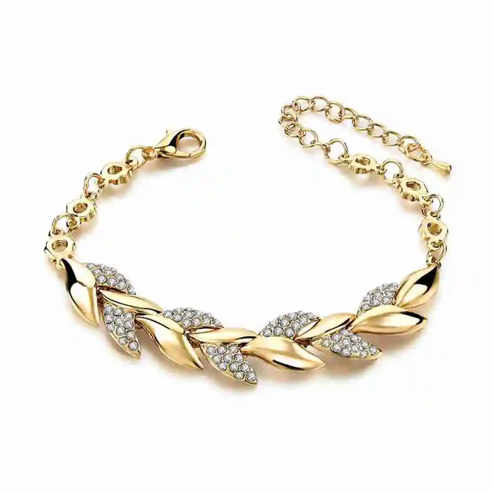 Модные золотые плетеные браслеты с листьями для женщин, роскошный браслет с листьями и кристаллами, ручная цепочка для невесты, свадебные украшения