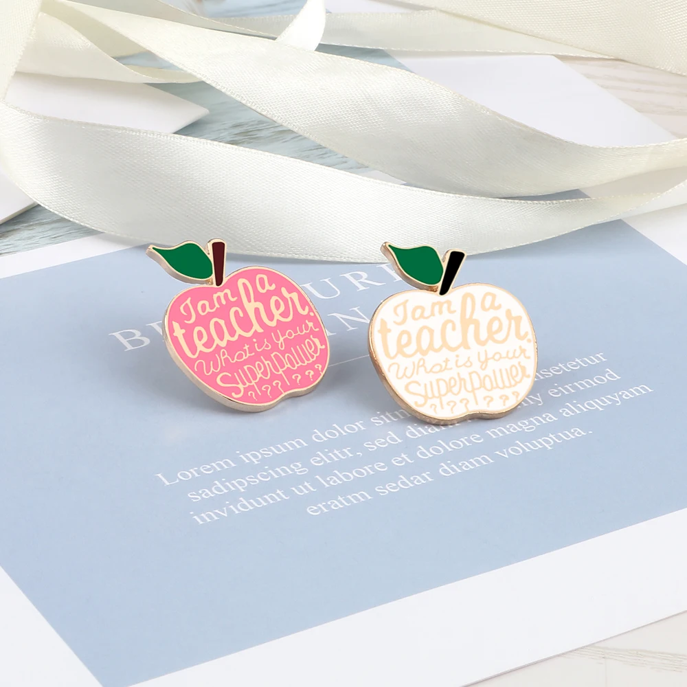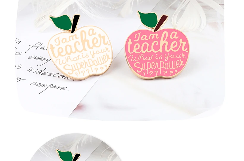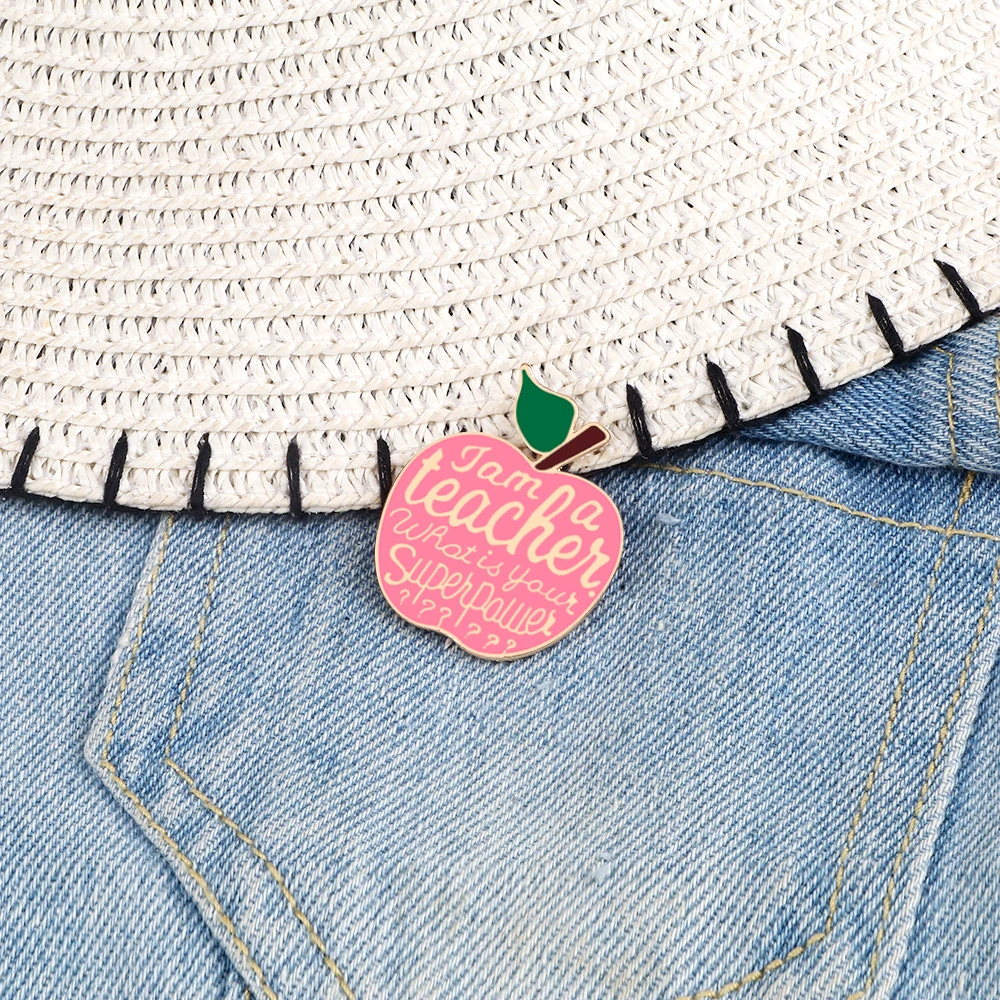 Розовые Броши в виде яблока, булавки для учителя, супер мощная креативная эмалированная буква, женские значки, сумки, куртка, джинсовое ювелирное украшение в виде лацкана, аксессуары для детей