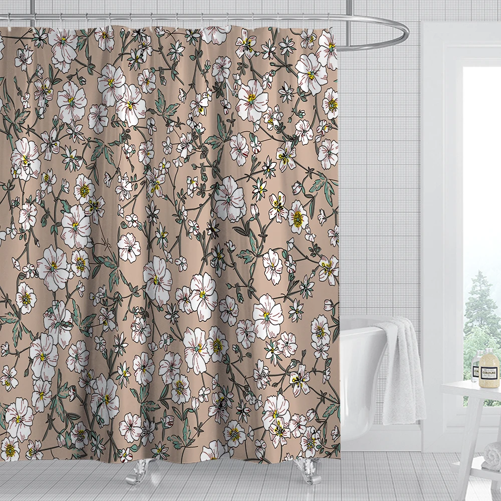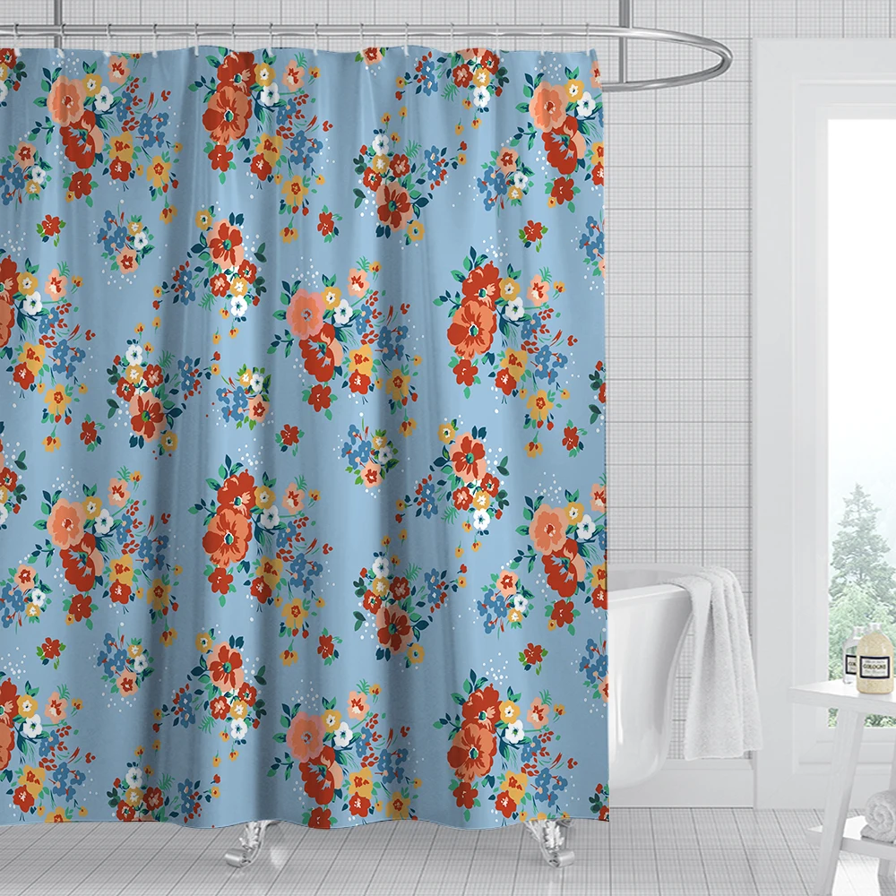 Небольшая занавеска для душа с цветочным рисунком, 100% полиэстер, небольшая занавеска для душа, комплект для ванной комнаты, водонепроницаемая Экологически чистая занавеска для душа