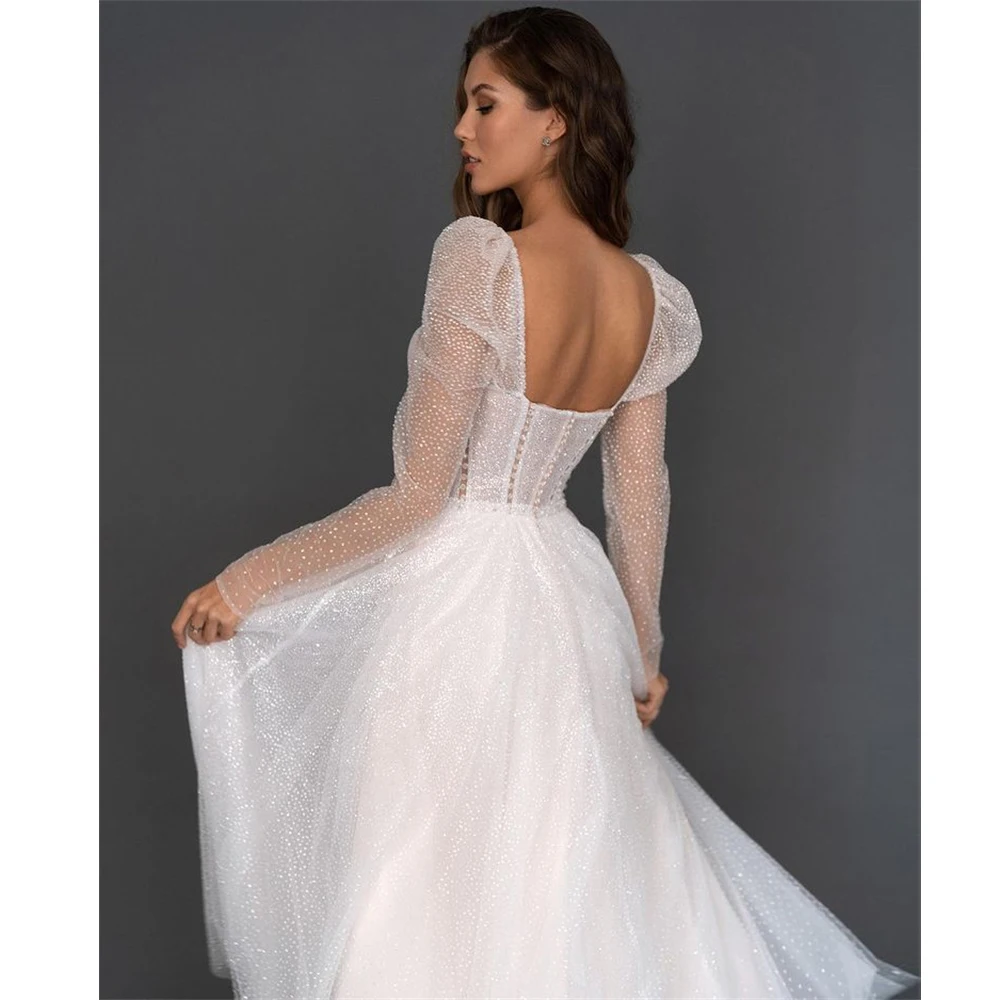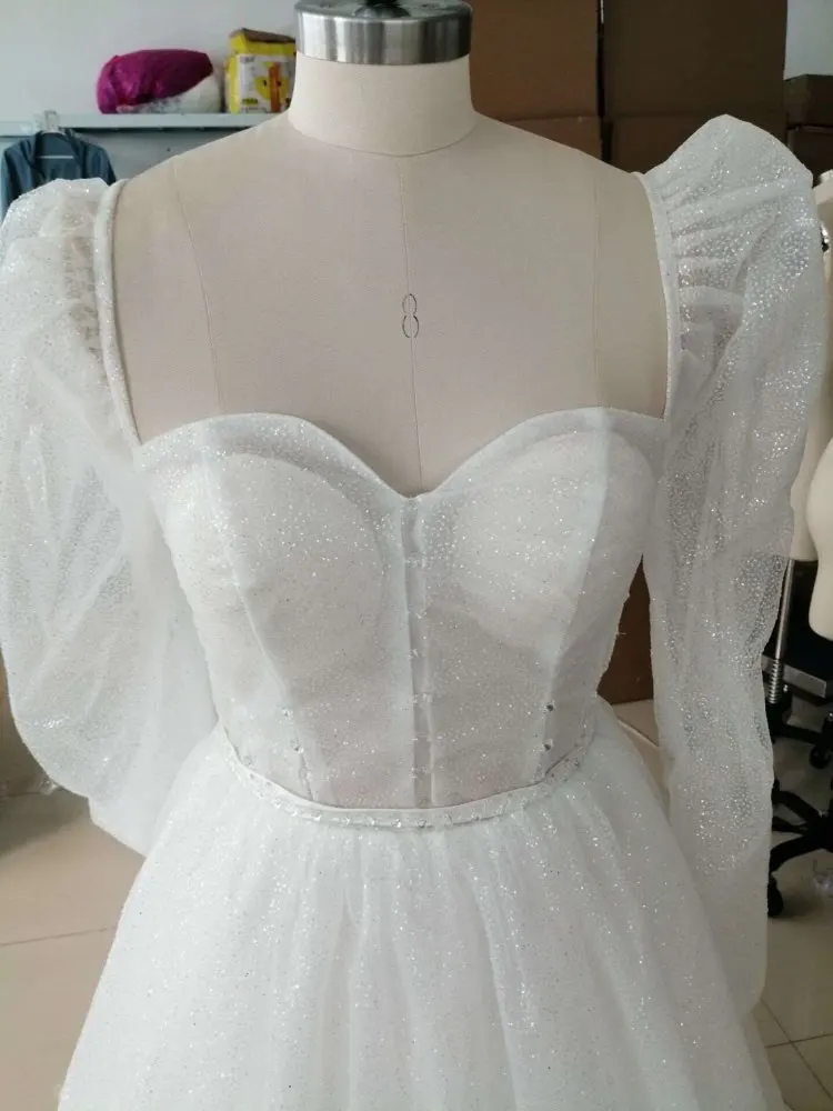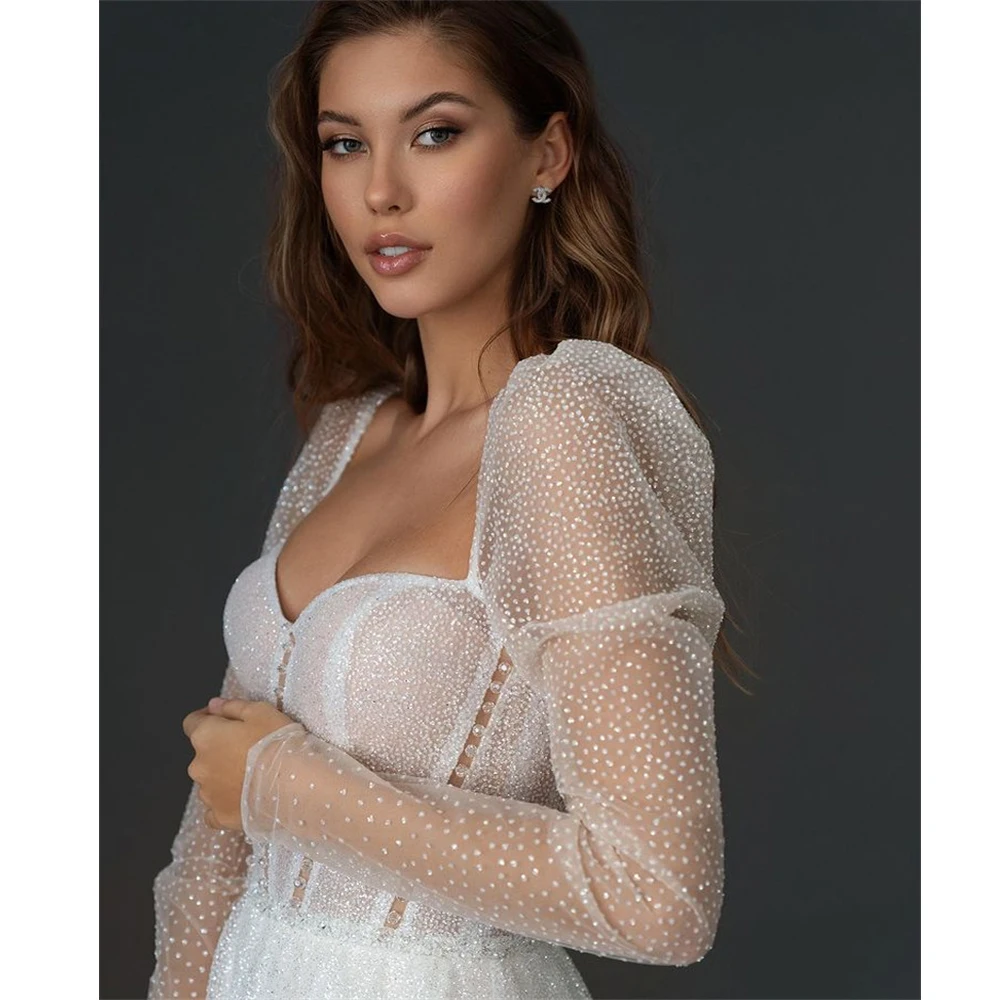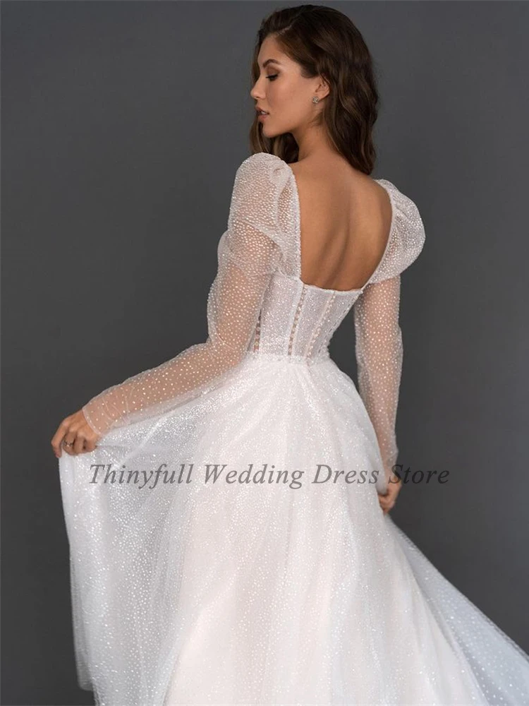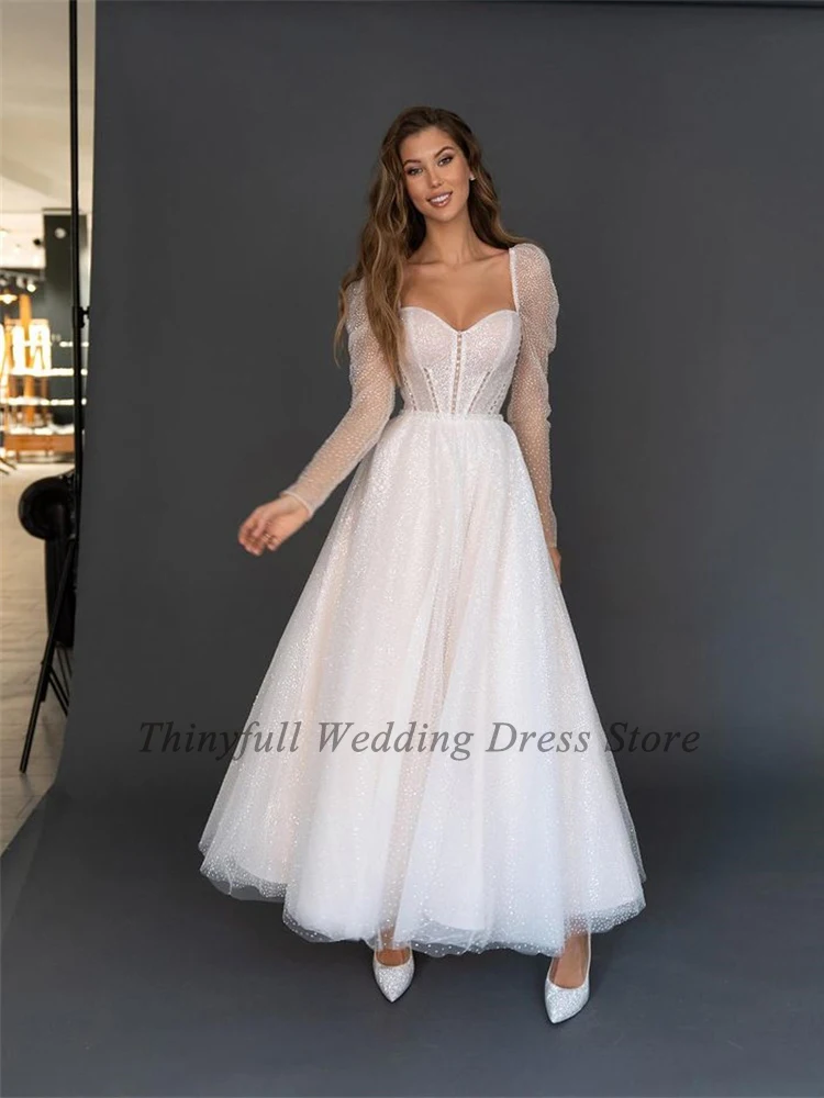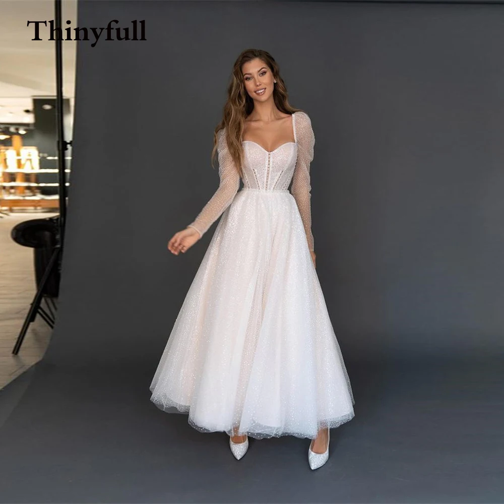 Thinyfull блестящие короткие свадебные платья с блестками 2021, с длинным рукавом, трапециевидного силуэта, возлюбленные, пляжные, свадебные платья, женское платье