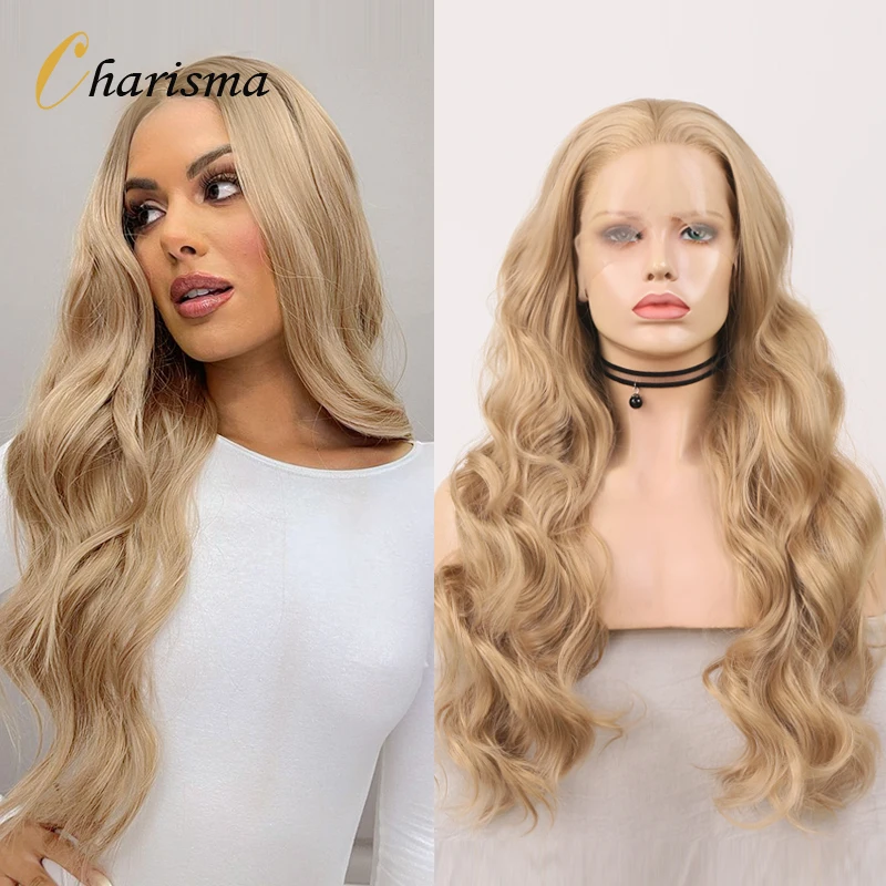 Харизма синтетический парик фронта шнурка светлые парики для женщин Длинные Волнистые Стиль естественная линия волос парики фронта шнурка термостойкий парик
