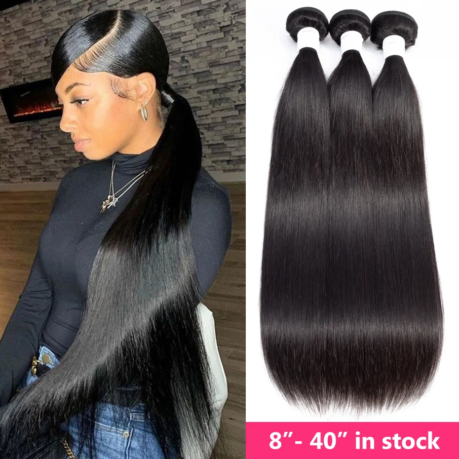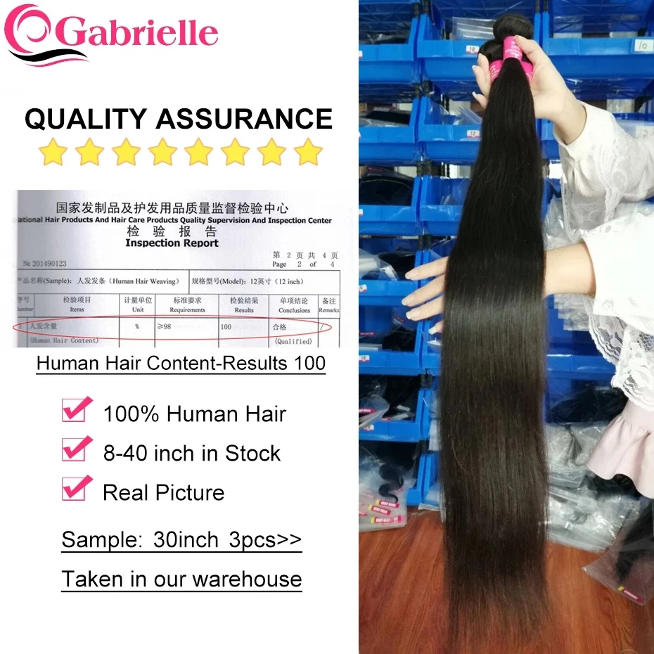 Прямые бразильские прямые пучки волос Габриэль 30 32 34 дюйма, нату...