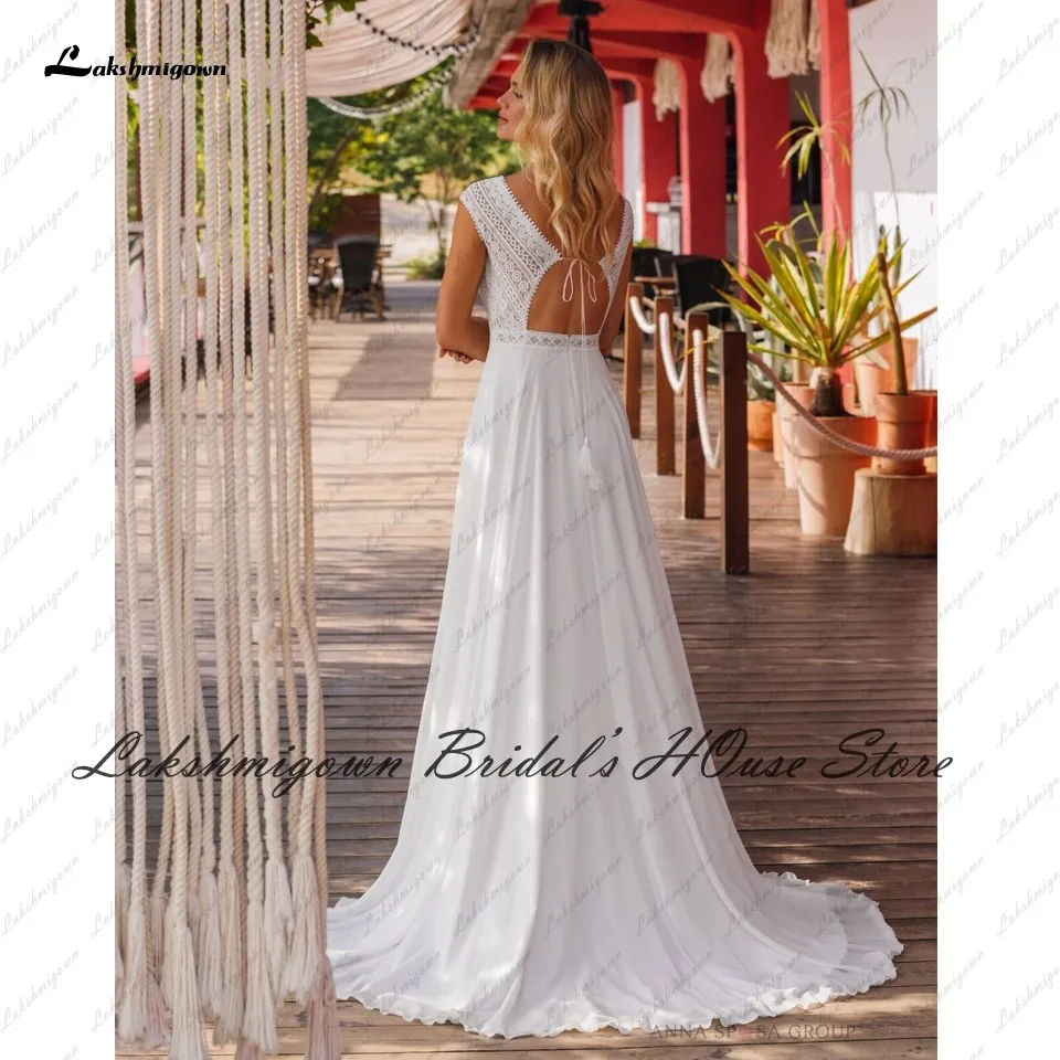 Женское свадебное платье Lakshmigown, пляжное платье А-силуэта, с кружевным лифом и вырезом сзади, 2021