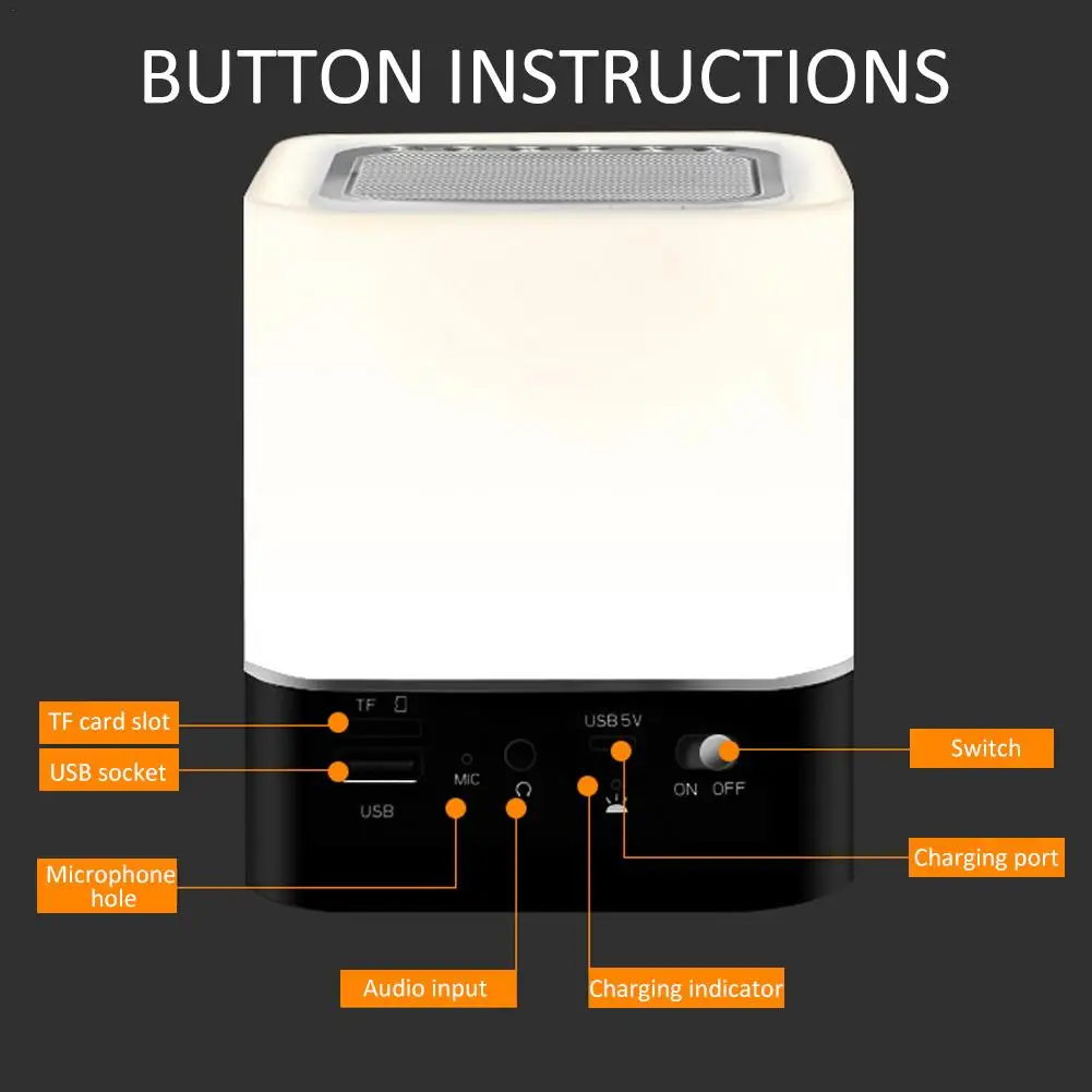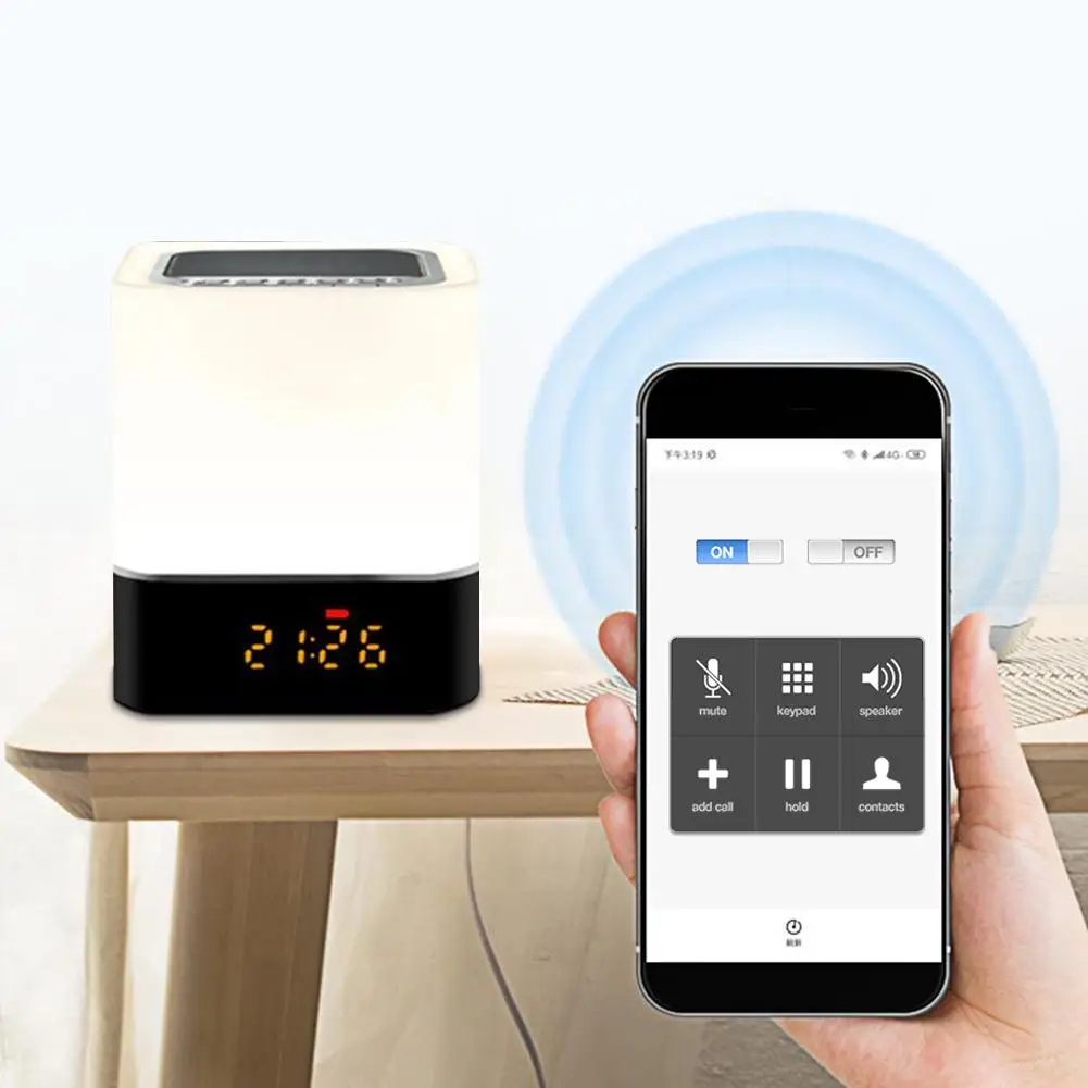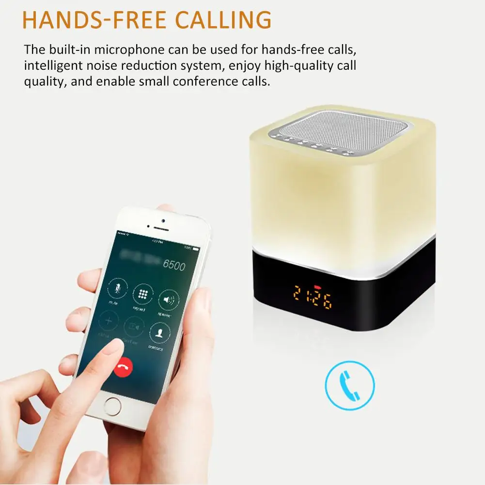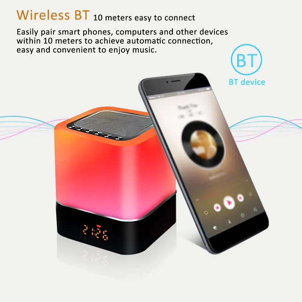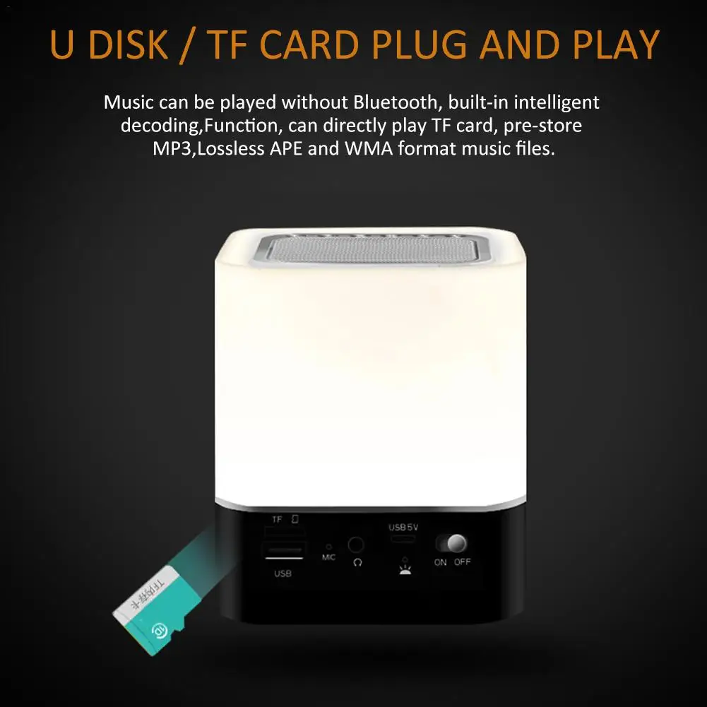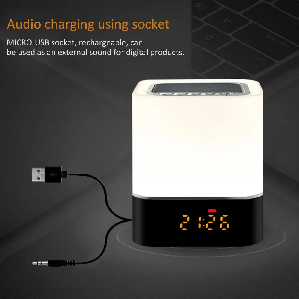 Светодиодная настольная Ночная лампа, сенсорный портативный смарт-динамик с регулируемой яркостью, цифровая USB-зарядка, сабвуфер, поддержка карт, будильник