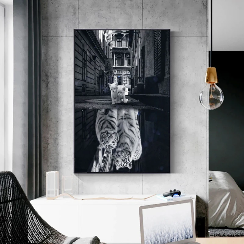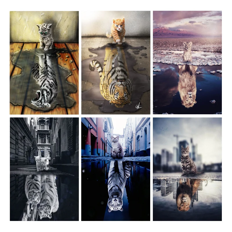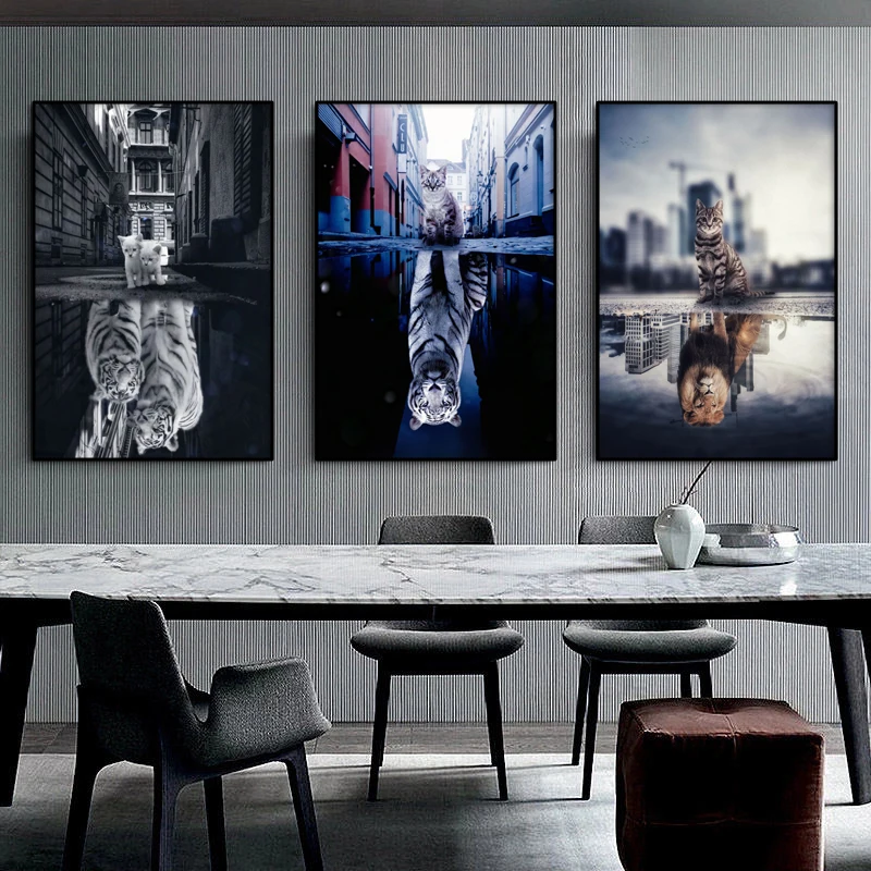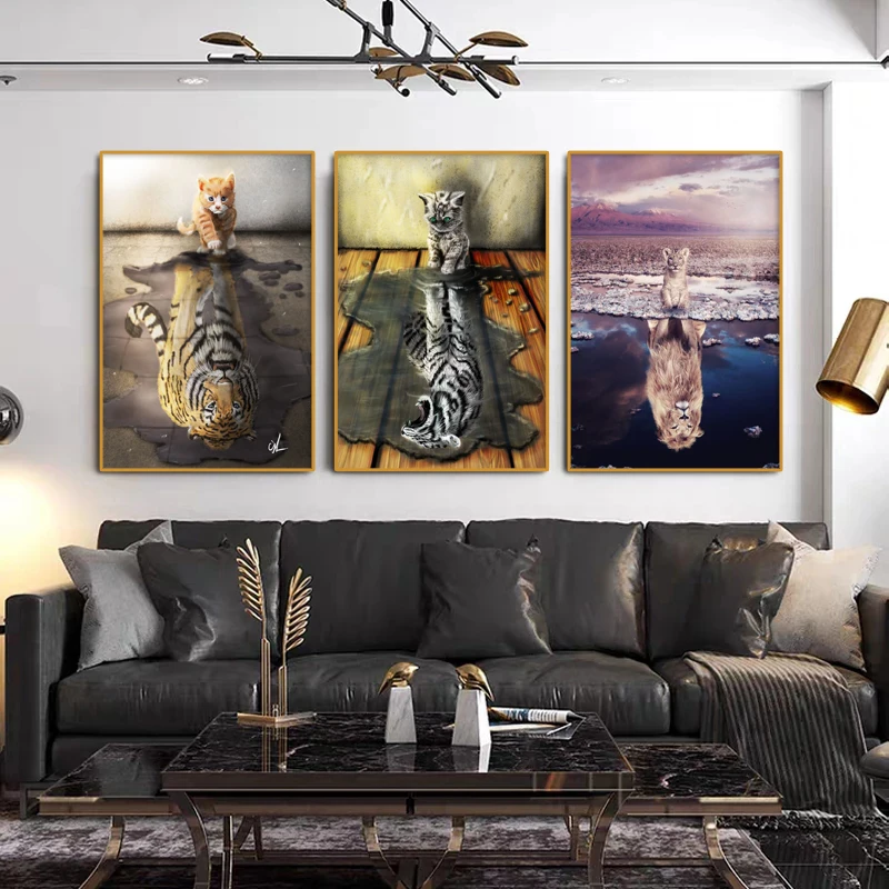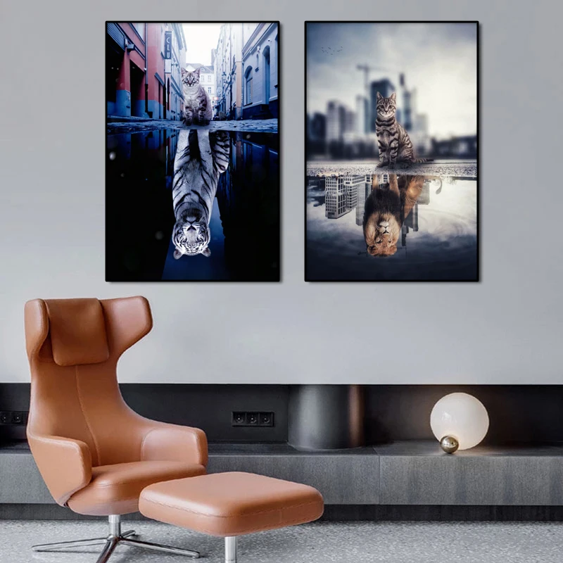 Креативная животная Кошка Собака Картина на холсте фантазия пейзаж ...