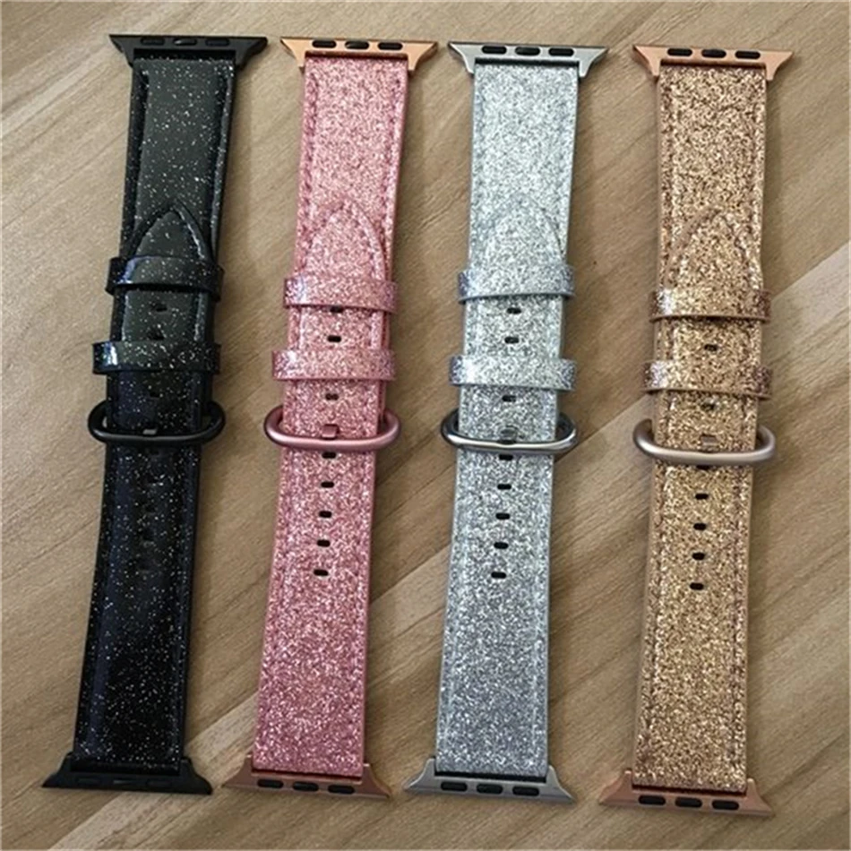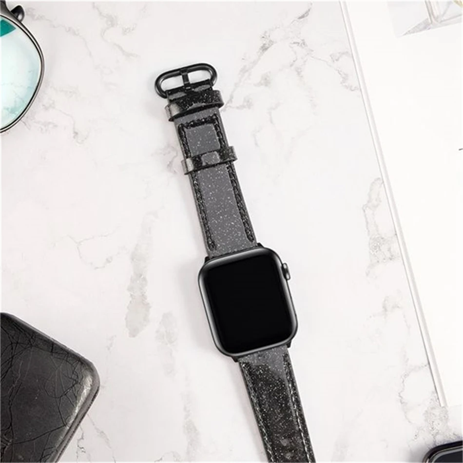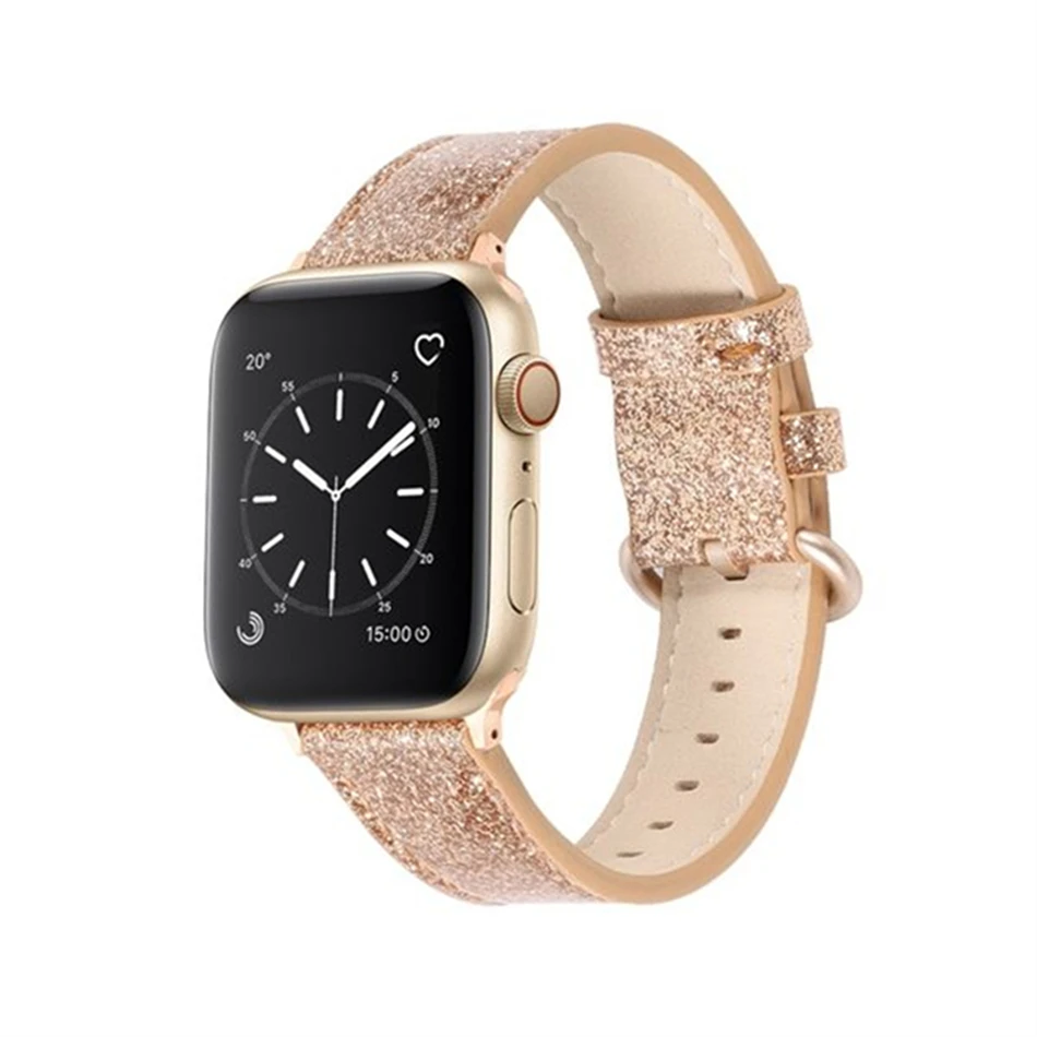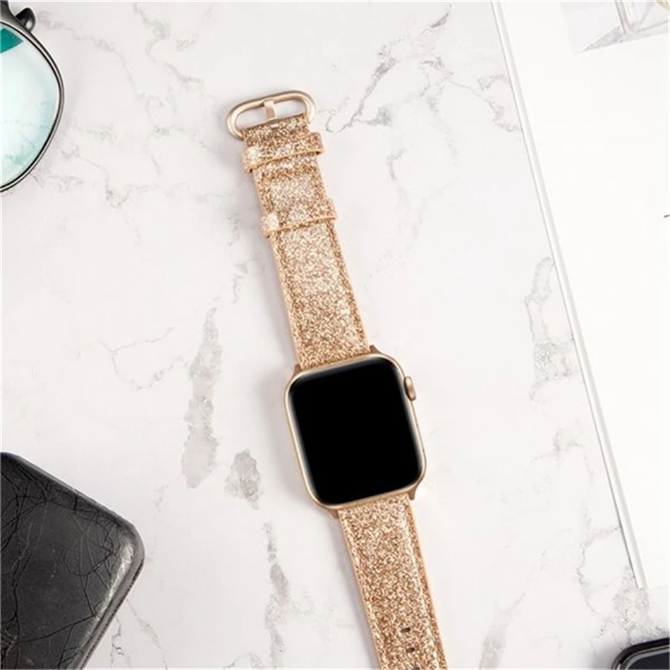 Роскошный модный ремешок для Apple watch, кожаный блестящий ремешок 40423844 мм, Iwatch Series 345216 SE, аксессуары для подарка любимой девушке