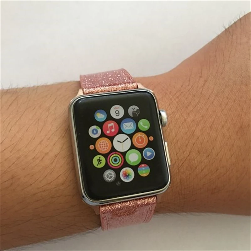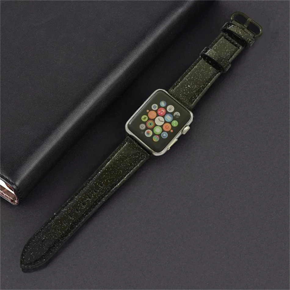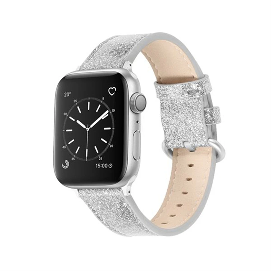 Роскошный модный ремешок для наручных часов Apple watch кожи с блестящими ремешками 40/42/38/44 мм Iwatch серии 3/4/5/Air 2/1/6 SE подарок девушке аксессуары