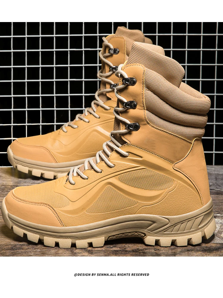 Ботинки мужские на толстой подошве, уличная спортивная обувь для пешего туризма, высокие ботинки-мартинсы, боевые военные ботинки