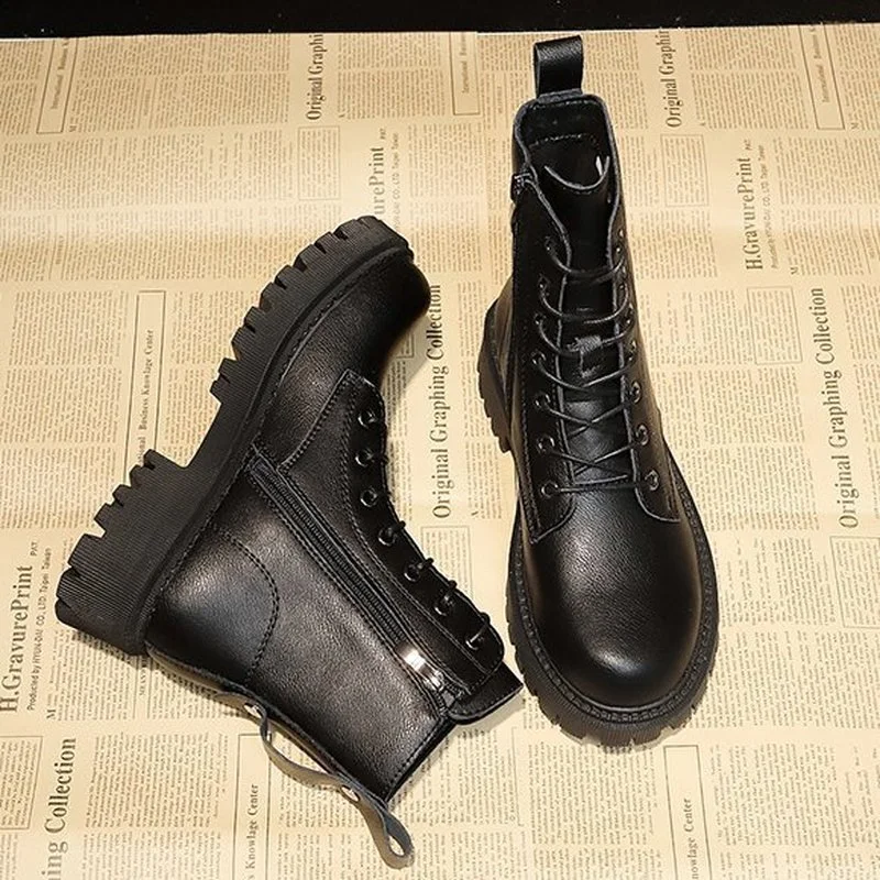 Женские ботильоны на платформе, черные боевые ботинки на шнуровке с пряжкой и ремешком, байкерские зимние ботинки, 2022