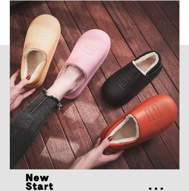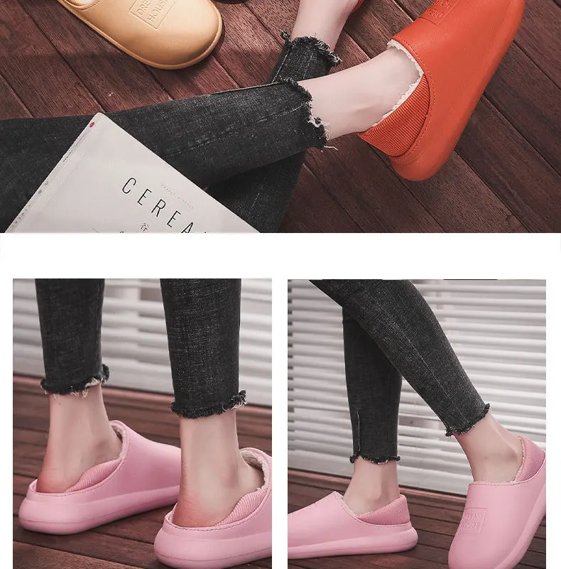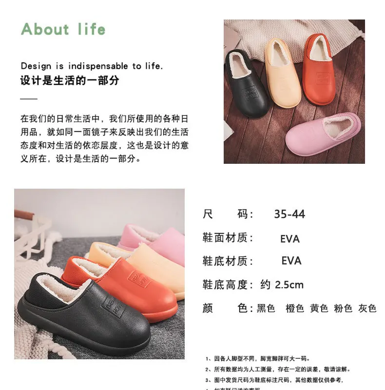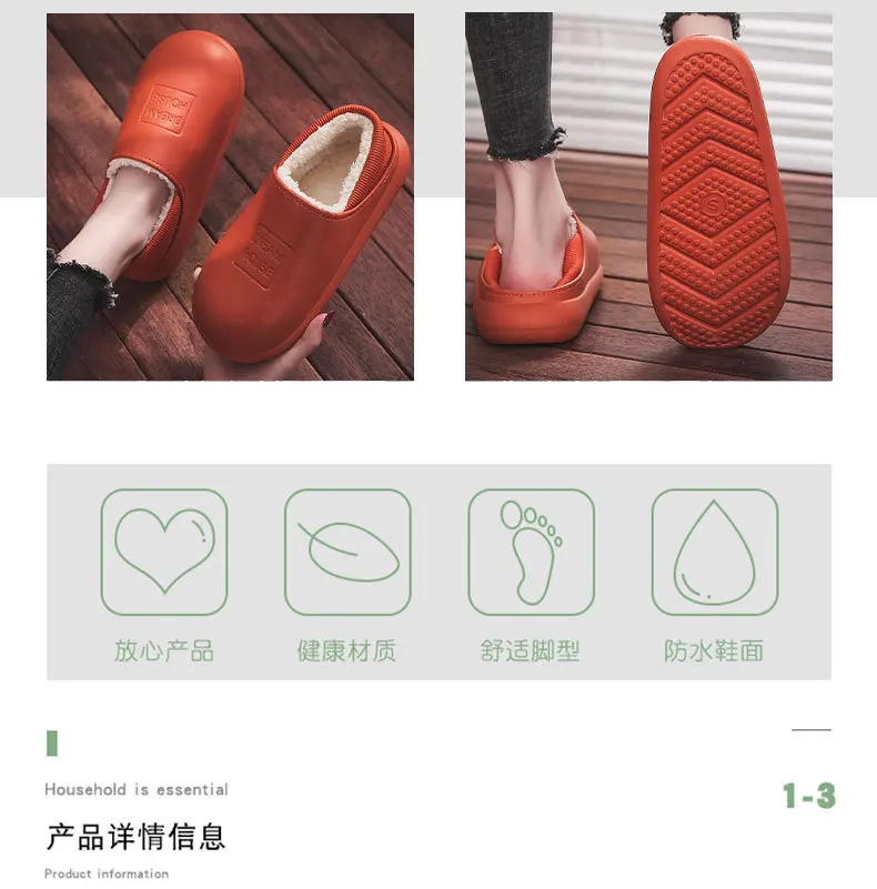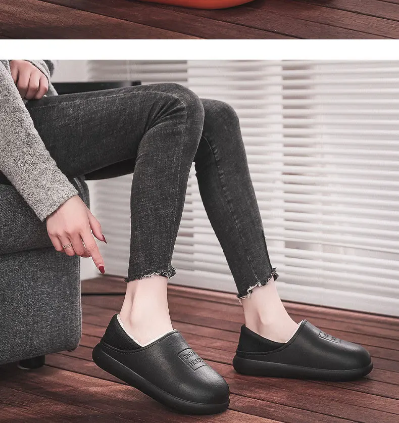 2021 Водонепроницаемые зимние домашние тапочки; Женские теплые плюшевые сабо на толстой подошве; Модная уличная Мужская обувь; Пара хлопковых туфель