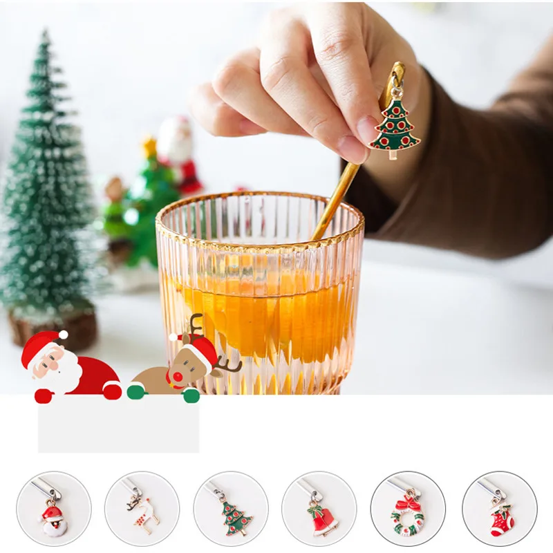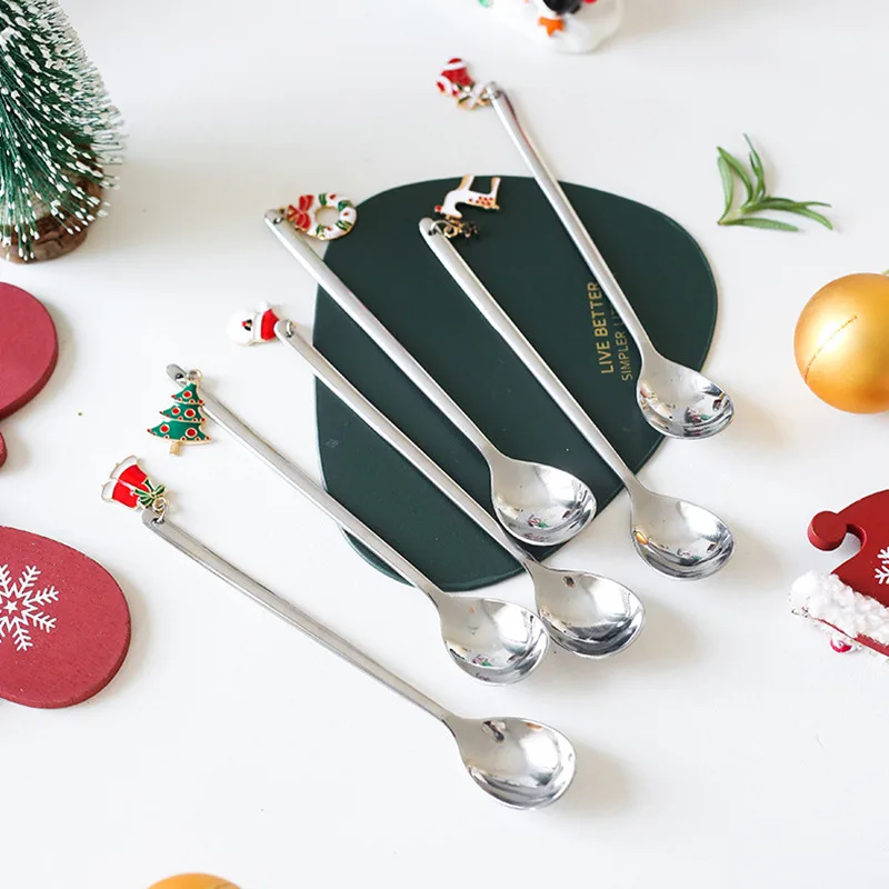 Новогодние металлические кофейные ложки на Рождество, украшения для праздвечерние, Рождество украшения для чайной церемонии, десертная ложка с длинной ручкой