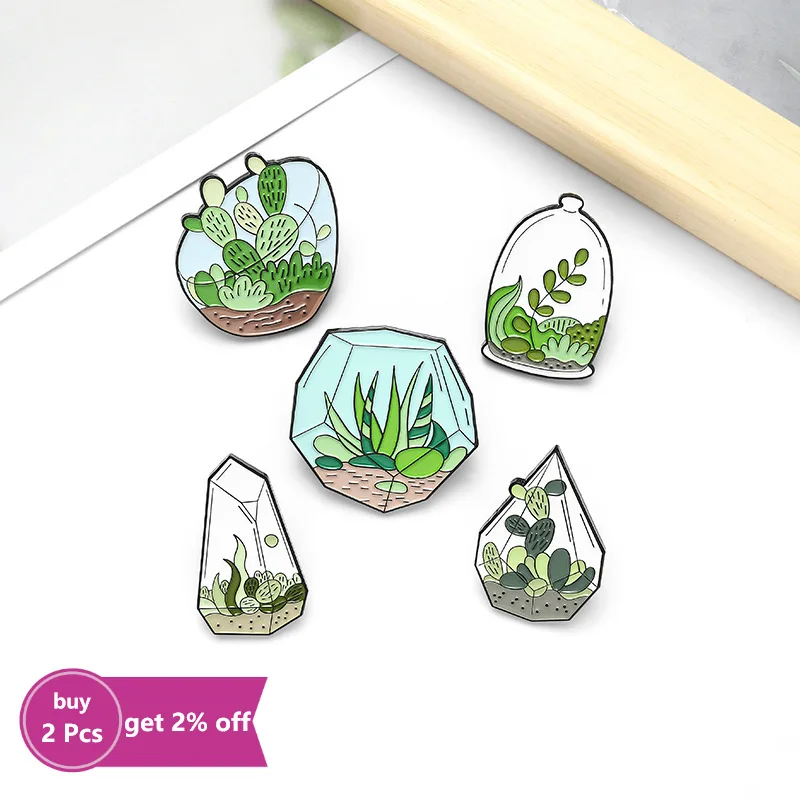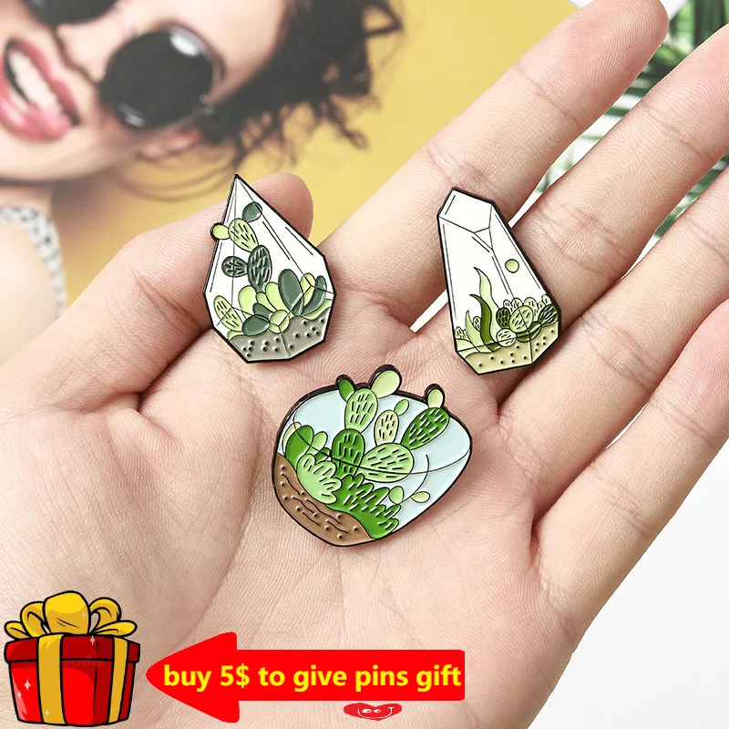 Внутренняя стеклянная эмалированная булавка в горшке для растений, оптовая продажа на заказ, Зеленый Кактус с алоэ, значок для ювелирных изделий, подарок для друзей