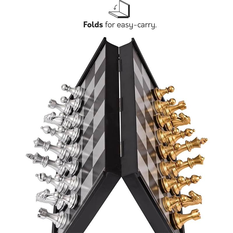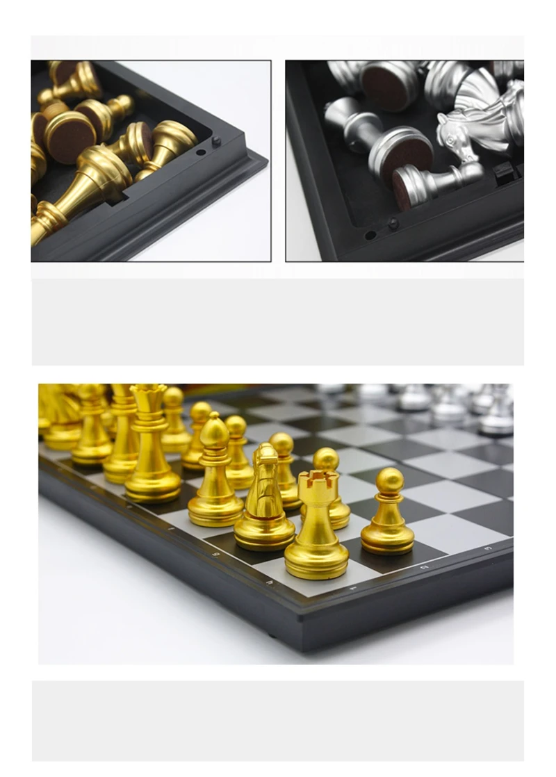 Medieval Chess Set Chessboard 32 Gold Silver Chess Pieces Plastic Magnetic Board Game Chess Figure Sets Checker Chess With Box