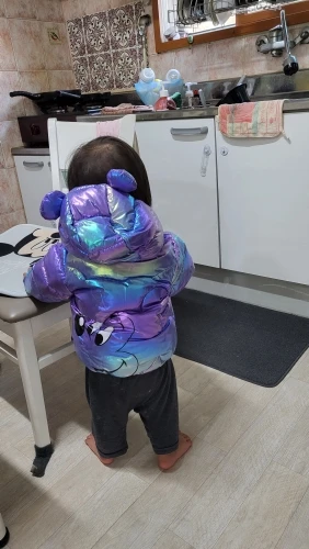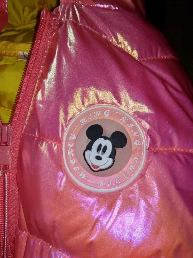 Il est magnifique, en plus le petit mickey devant fait de la lumière quand on tape dessus, ma fille est super contente. La doudoune est bien epaisse. Et la couleur est juste dingue.