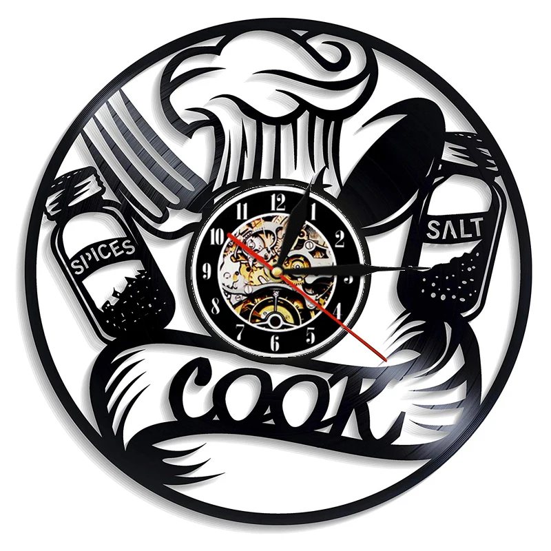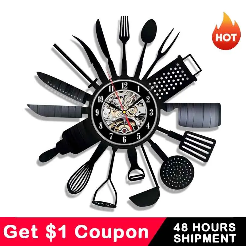 Кухонные приборы с виниловой пластиной, настенные часы, нож и вилка, ложка, настенные часы, современный дизайн, для ресторана, кухни, домашний декор, подарок шеф-повара