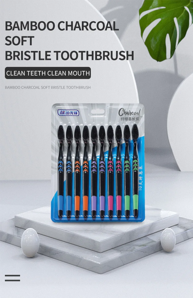 10 шт. зубная щетка с мягкой щетиной для взрослых бамбуковый уголь Бытовая тонкая шерсть антибактериальные мужские и женские мужские Семейные уход за полостью рта