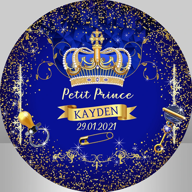 Королевский синий принц круглый фон крышка золотая корона украшение для вечеринки в честь будущей матери Конфеты стол Баннер день рождения