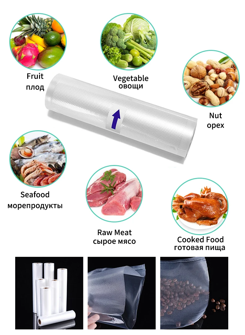 Вакуумные пакеты для хранения пищевых продуктов, 5 рулонов2 рулона,...