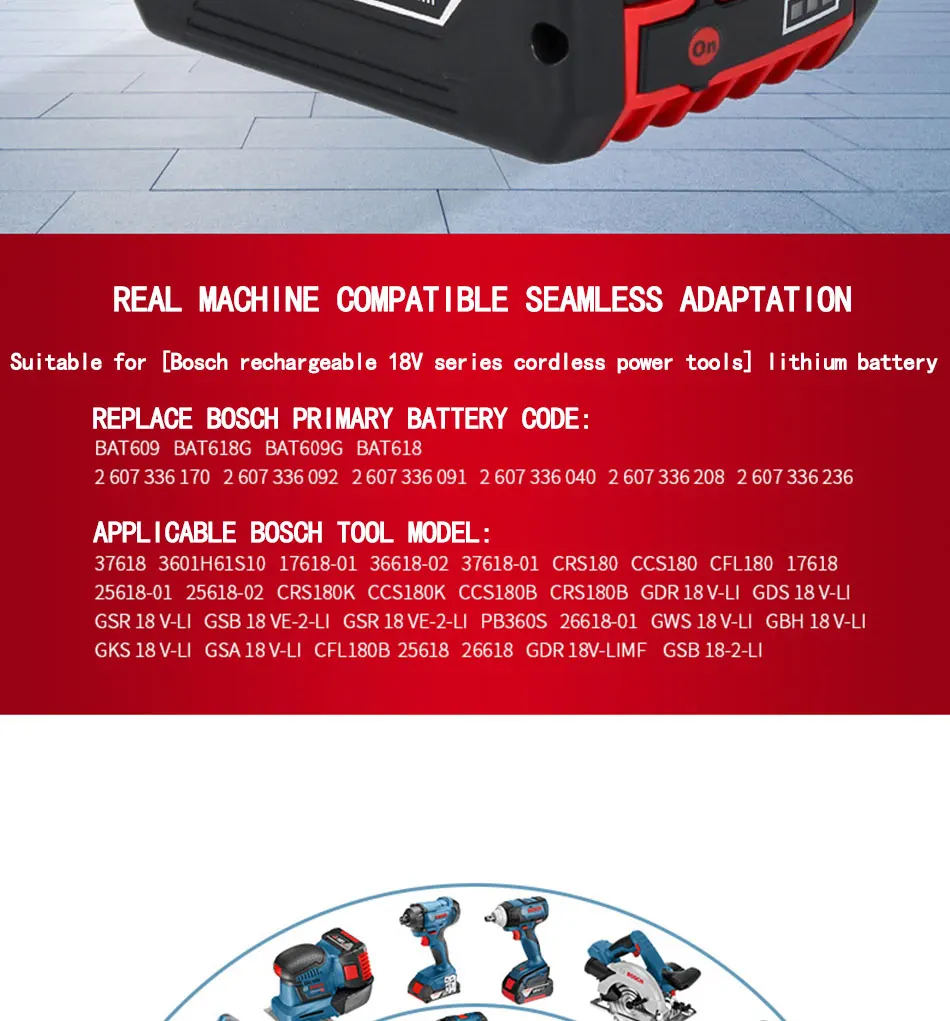 Перезаряжаемый литий-ионный аккумулятор для 18 в Bosch 18000 мАч со...