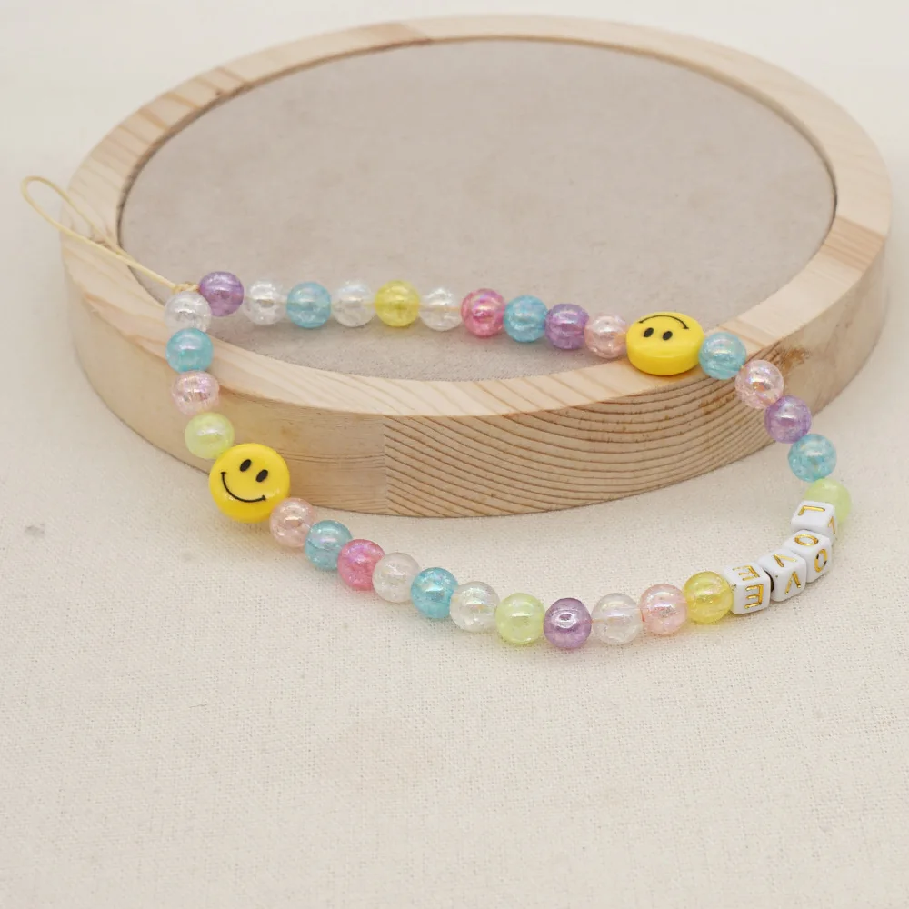 Модный милый женский ремешок для мобильного телефона со смайликом и цветными бусинами, 2021