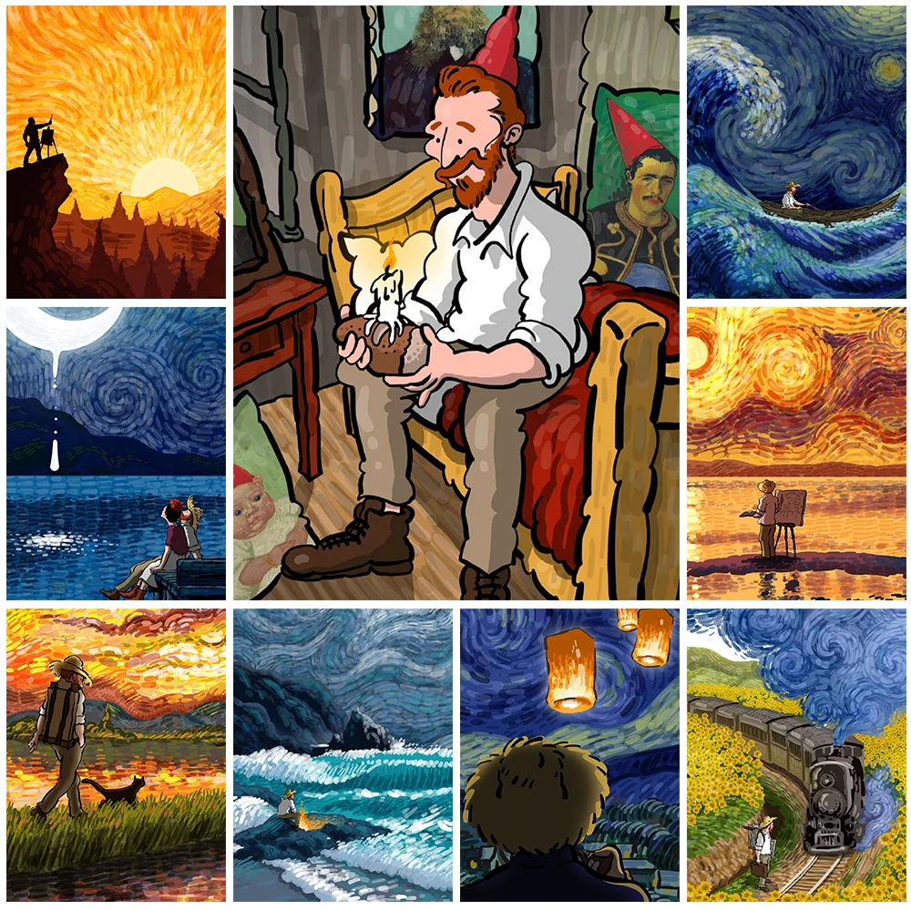 Алмазная живопись 5D сделай сам Ван Гог, ручная роспись Стразы, изысканная трехмерная картина для украшения дома на заказ