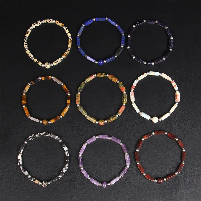 Бисер серебряного цвета браслеты с подвесками из натурального аметиста, браслет с прямоугольным камнем, Женская молитва, медитация, ювелирные изделия, стрейч
