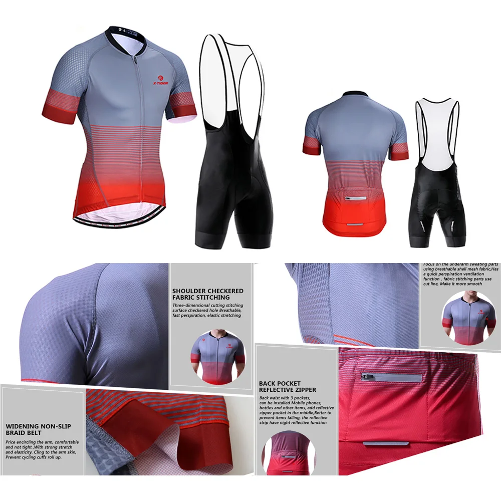 X-TIGER комплект для велоспорта, мужские профессиональные велосипедные нагрудники, шорты, дышащая быстросохнущая велосипедная одежда, Майо, велосипедная майка