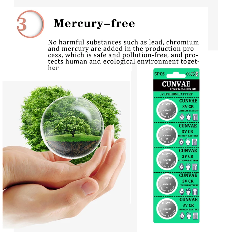 Модель: CR2025Тип батареи: Батарея CR2025 3 в, литиевая батарейка SB-T14 BR2025, монетницаБренд: CUNVAEХимия: батарея LiMnO2Номинальное напряжение: 3 вПредельное напряжение: 2,0 вСтандартный ток: 0,4 мАчНормальная Емкость: 150 мАчПостоянный ток: 3 мА (максимум)Импульсный ток: 20 мА (максимум)Максимальный размер: 20,0x2,5 ммТемпература: от-40 до + 60 градусов ЦельсияТакже можно назвать: CR2025 , DL2025, ECR2025, LM2025, 2025, KCR2025, BR2025, KL2025, L2025, E-CR2025, KECR2025, 208-205, DL20256B, BR2025-1W, CR2025-1W, KCR2025, l12, LM2025, SB-T14, LF1/2V, 5003LCПрименение: часы, часы, калькуляторы, игрушки, камеры и многие другие электронные устройства.