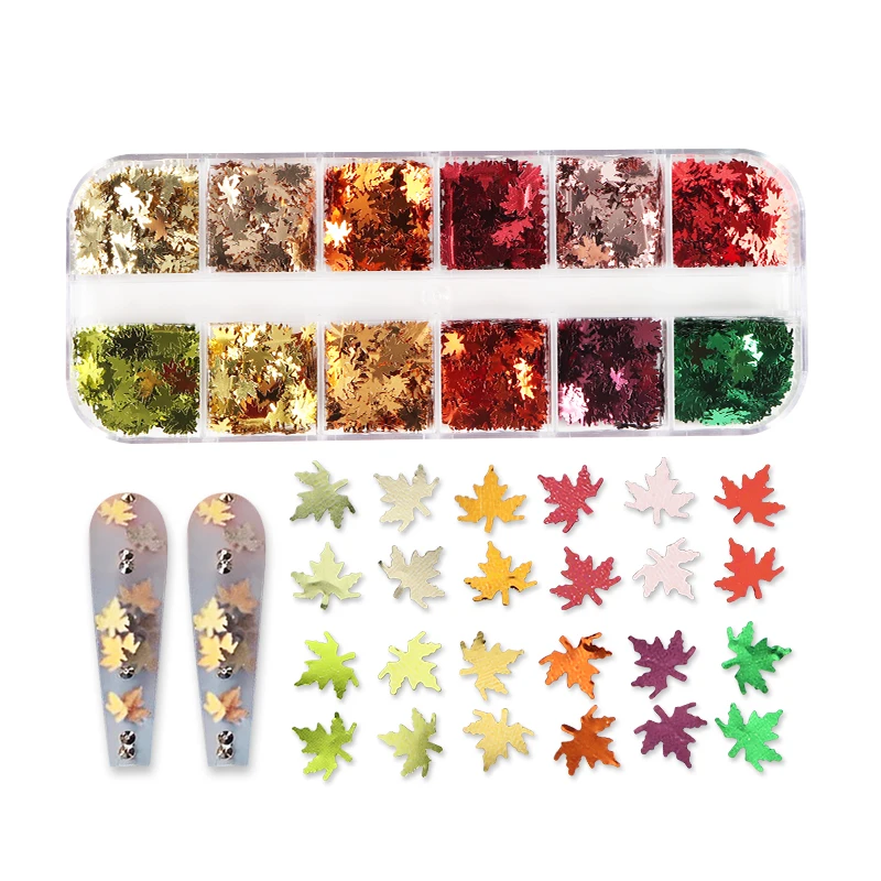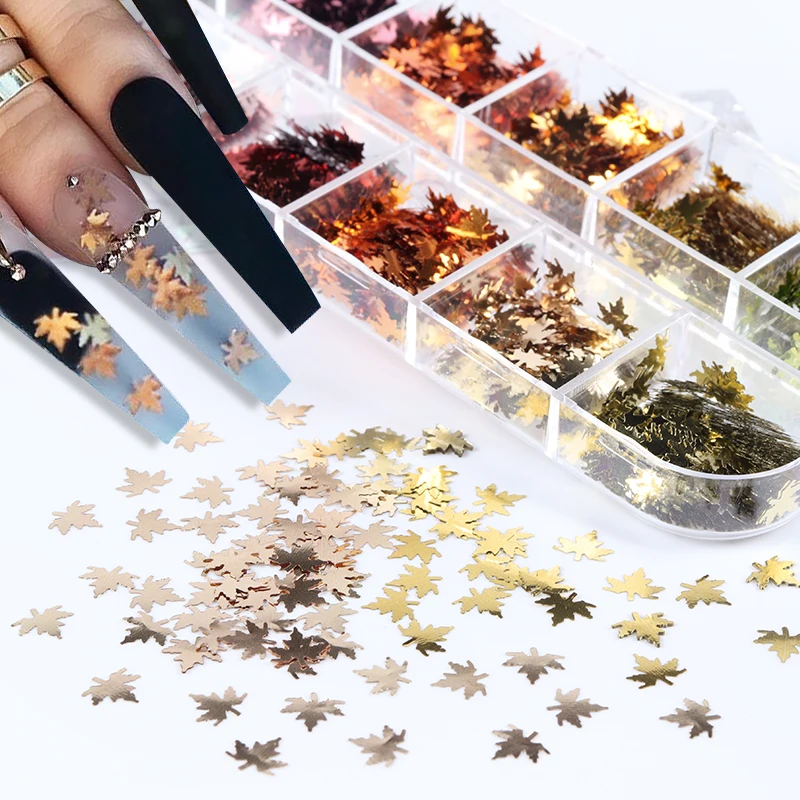 12 цветов, золотой красный кленовый лист, блестки для ногтей, художественные блестки, блестки, хлопья, 3D Подвески для ногтей, сделай сам, дизайн маникюра, украшения для ногтей, 2021