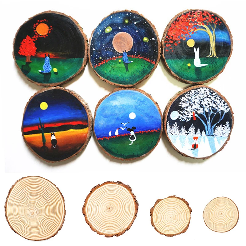 3-12 см натуральные сосновые необработанные деревянные ломтики круги с деревом коры DIY ремесла Свадебная вечеринка живопись круглая деревянная доска