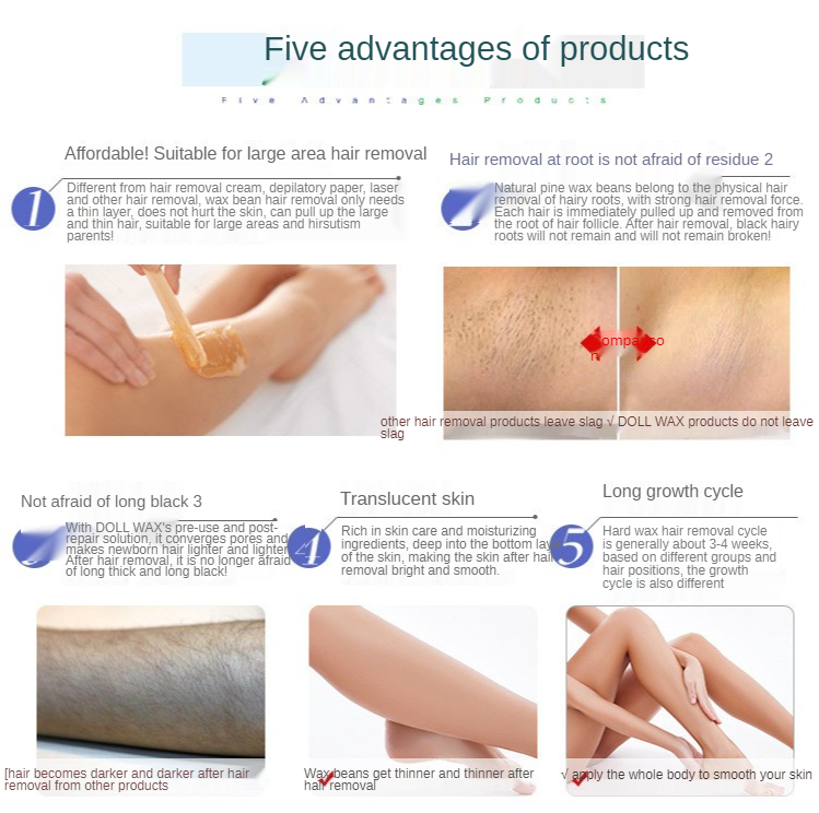Основные ингредиенты:Натуральная канифоль, минеральное масло Вес:Approx.25g/сумки Количество:1 сумка Материал:Твердый воск Пол:Мужской, женский Функция:Удаление нежелательных волос в подмышках, руках, ногах и других частях тела Состояние:100% Новый бренд Дополнительный вкус:Ромашка, молоко, яблоко, алоэ, роза, чайное дерево, лаванда, шоколад, мед, черный цвет для мужчин Посылка включает: 1 пакет только восковые бобы Особенности 1. Использование мягких и чистых ингредиентов для обеспечения безвредности и без стимуляции кожи во время удаления волос. 2. Специально произведено на основе структуры человеческих волос, таких как длина и твердость волос, которые будут лучше для удаления волос или задержки его роста. 3. Не требуется бумага для депиляции, нагревание восковой фасоли и Использование шпателя непосредственно нанесите воск на кожу, очень удобно в использовании. 4. Доступно в 10 вкусах, вы можете выбрать в вашу пользу. Черный цвет без вкуса специально разработан для мужчин. Как использовать 1. Нагревание восковой фасоли в восковом нагревателе при подходящей рабочей температуре. 2. Нанесите тонкий слой воска на депиляцию в направлении роста волос. 3. Удалите воск с помощью твердого действия против направления роста волос после того, как воск станет твердым.