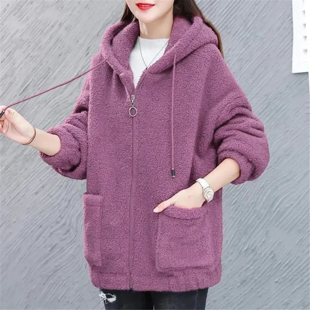 Парка женская из искусственной овечьей шерсти, в стиле Харадзюку, осенне-зимняя, теплая, однотонная, с капюшоном