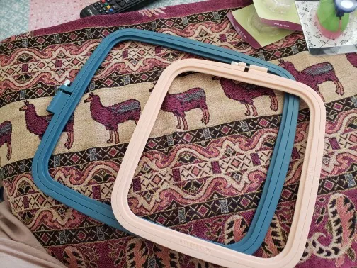 мне не понравились пяльца, не удобные, лучше простые пластиковые круглые.