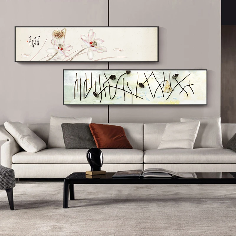 Декор для гостиной в китайском стиле ретро Лотос и кои рыба, новый цветок и птица в китайском стиле, настенный художественный постер для дома