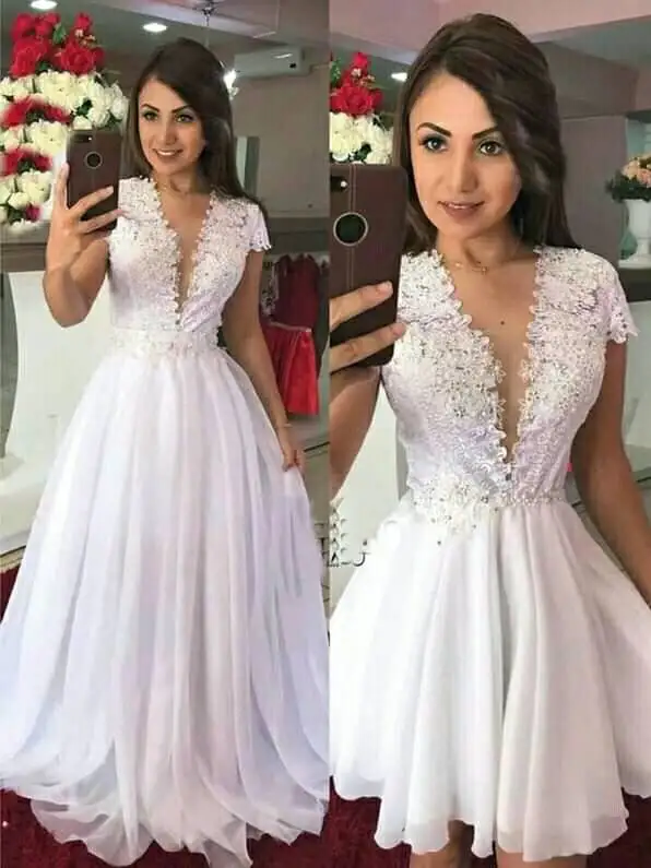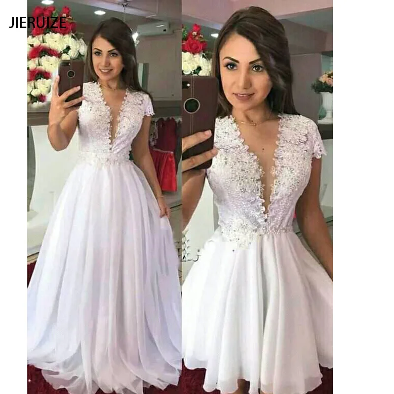 Женское свадебное платье 2 в 1 JIERUIZE, белое кружевное платье с глубоким V-образным вырезом и коротким рукавом