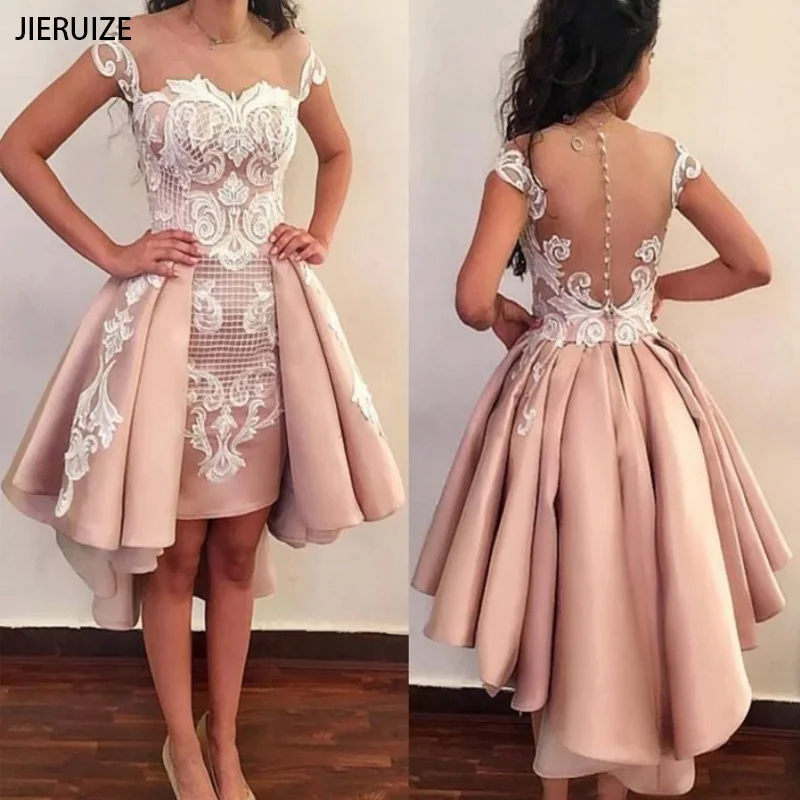 JIERUIZE белое кружевное розовое короткое платье для встречи выпускников на пуговицах с прозрачными рукавами-крылышками Короткие коктейльные платья