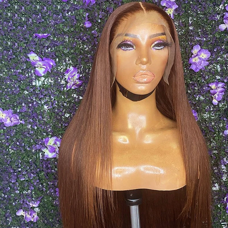 Парик на сетке спереди коричневого цвета, прямые парики на сетке спереди, парики из человеческих волос для женщин, перуанские волосы без клея, парик с детскими волосами