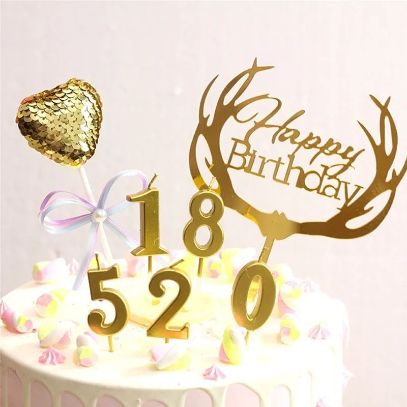 Свеча на день рождения с золотыми цифрами, украшение для торта с ци...