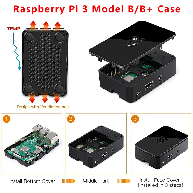 Чехол RELKA R450 Raspberry Pi 3 Model B ABS, черная коробка, пластиковая крышка, защитная оболочка для Raspberry Pi 3 Model B + 3B Pi 3s