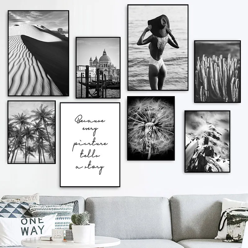 Черно-белая фотография с изображением пустыни одуванчика, художественные принты, кактус, природный постер, картина на Скандинавском холсте, Настенный декор HD0111